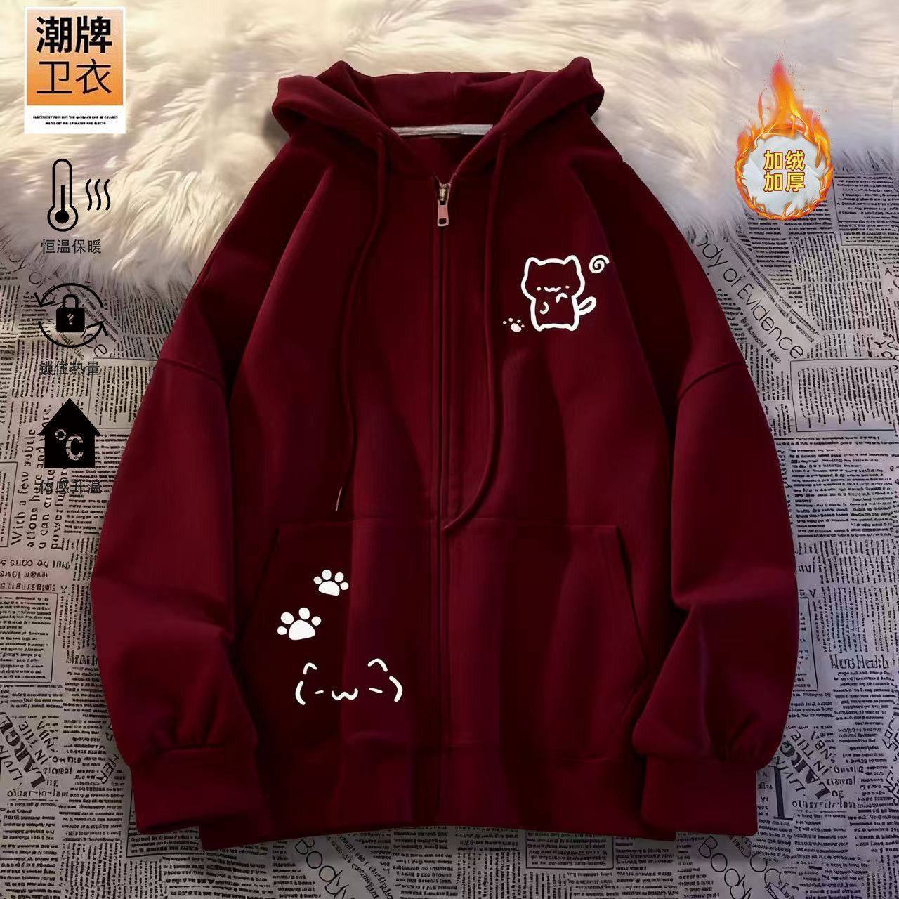 📚 女童酒红色2026新款秋冬季开衫卫衣外套初中生本命年连帽拉链帽衫