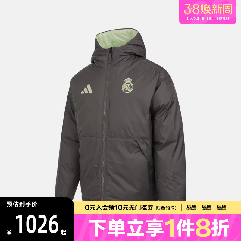📚 adidas阿迪达斯男子皇家马德里足球运动保暖连帽羽绒服外套JN3077