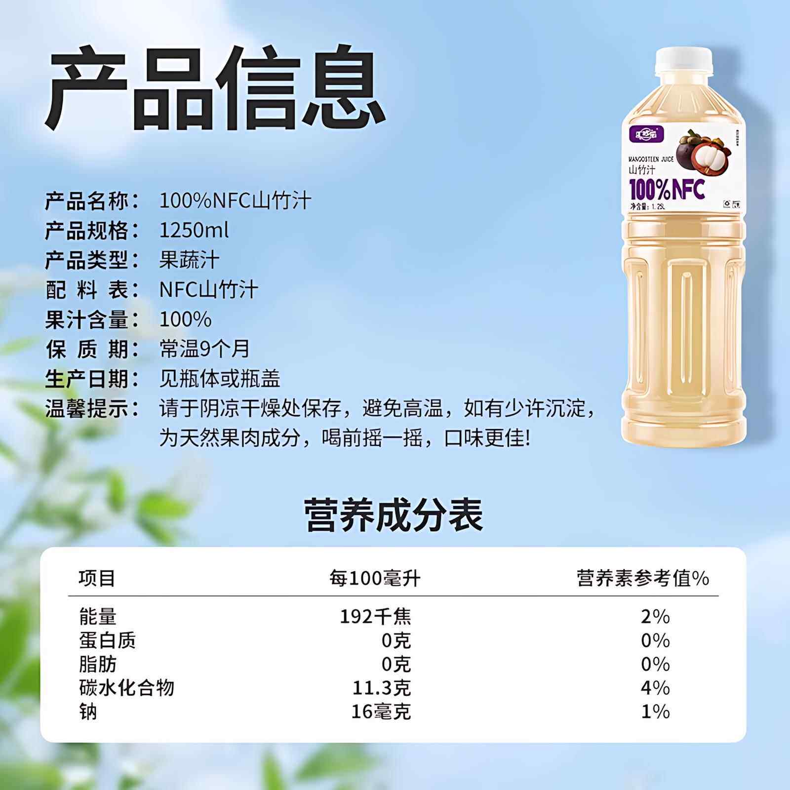 📚 胖超市东来胖東NFC山竹汁100%官方旗舰店0添加剂大瓶饮料來纯果汁
