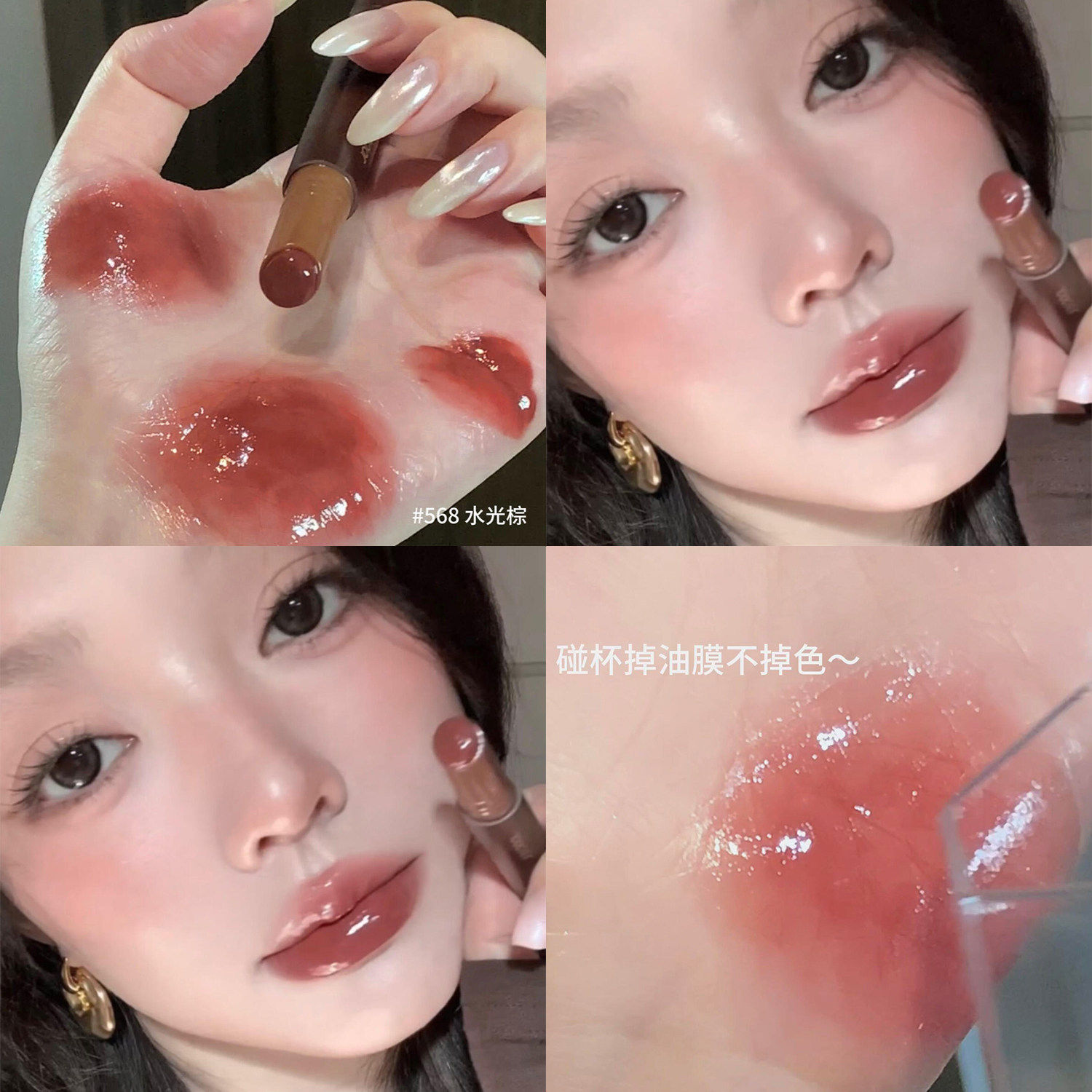 📚 JOOCYEE酵色固体唇蜜镜面水光棕色系琥珀嘟嘟唇568口红唇釉唇彩