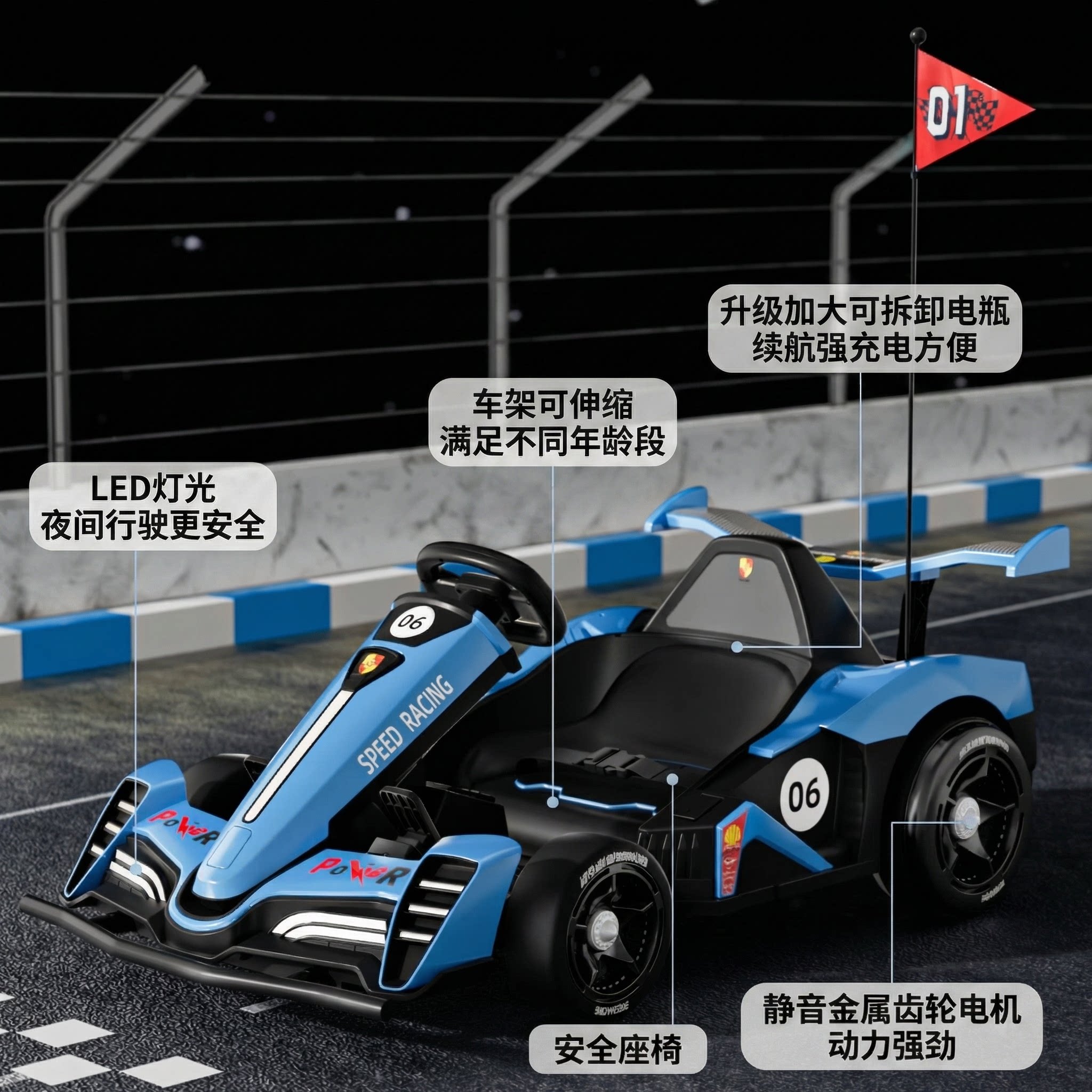 📚 酷趣新款网红可充电四轮卡丁车可坐成人好安装便携赛车儿童玩具车