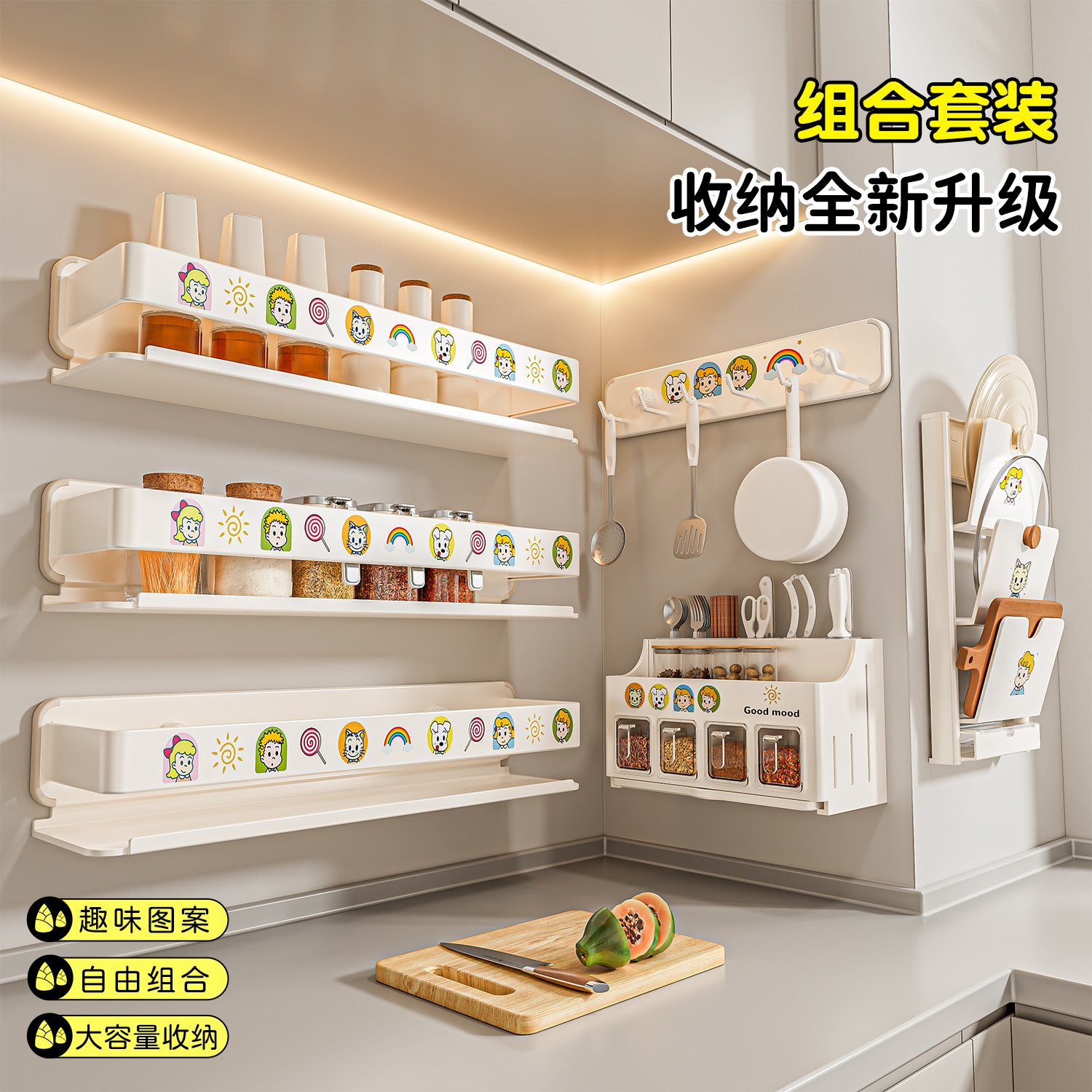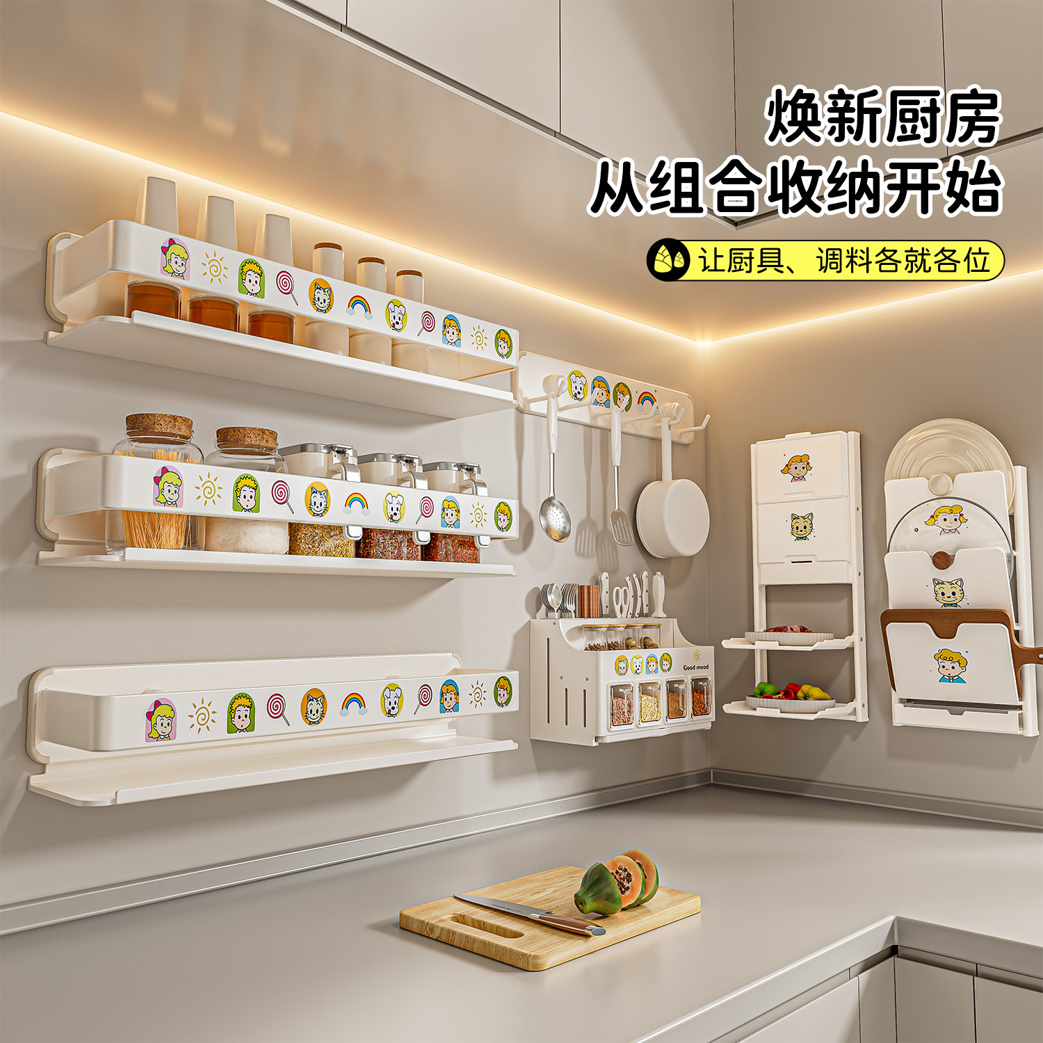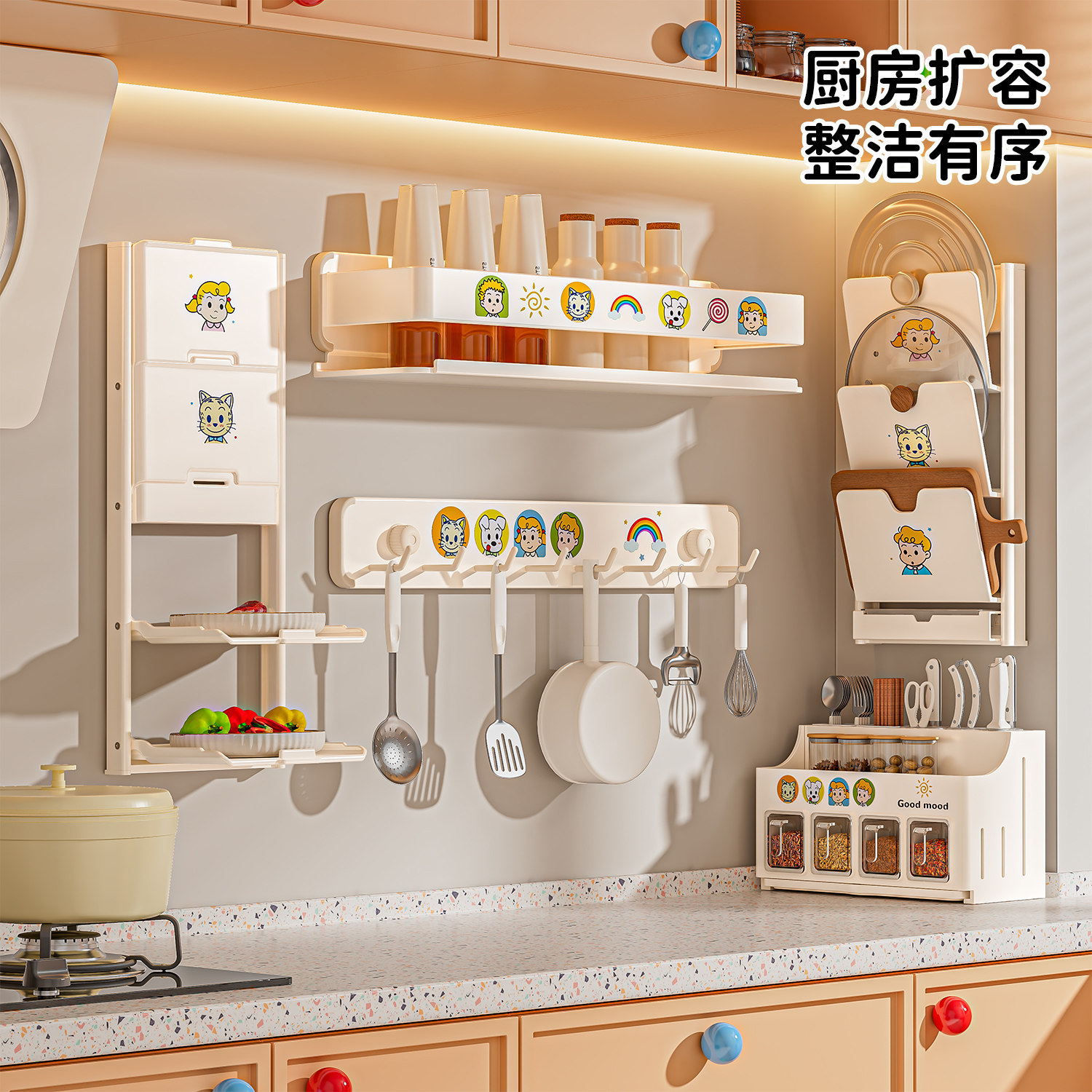 📚 厨房置物架免打孔调味料壁挂式刀架砧板家用用品大全多功能收纳架