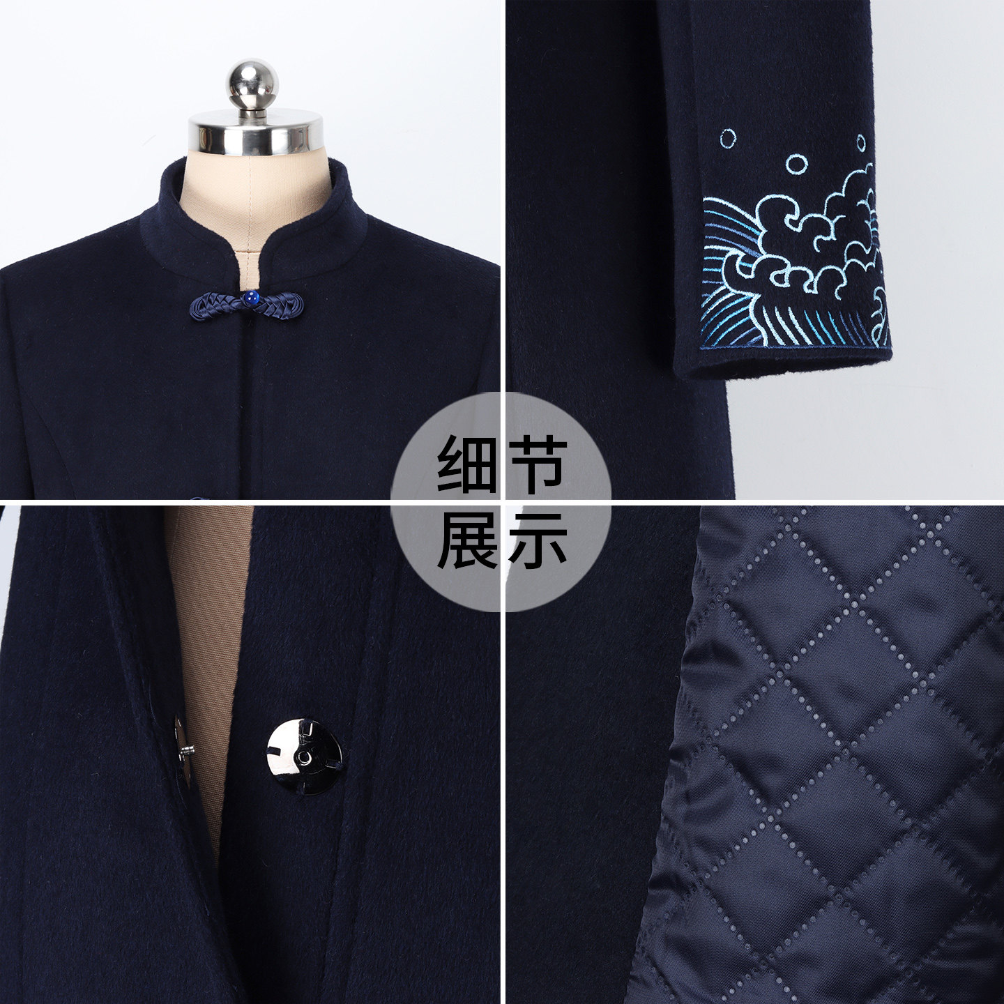 📚 冬季加厚新中式国风女大衣中长款茶楼酒店前台接待毛呢外套工作服