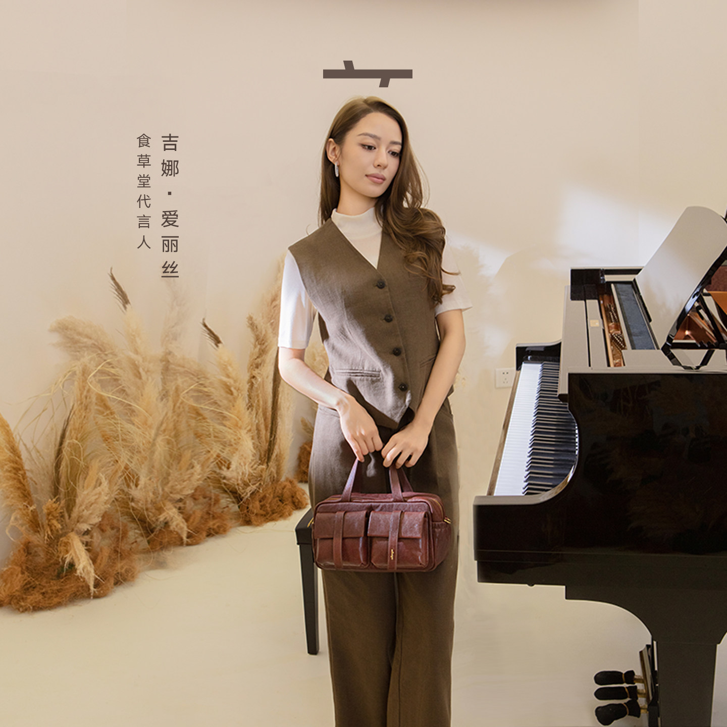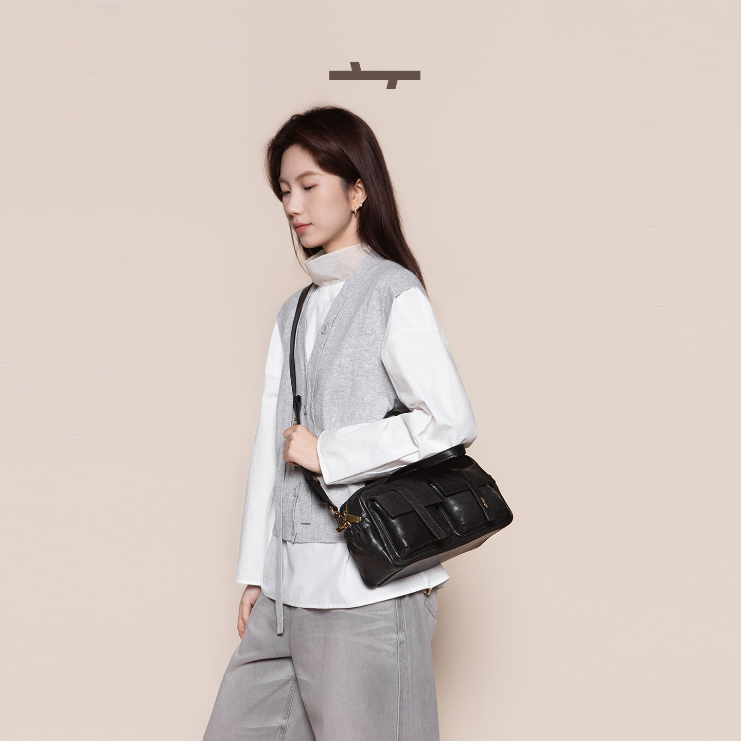 📚 【吉娜同款】食草堂头层植鞣皮枕头包多口袋斜挎包松弛感单肩包
