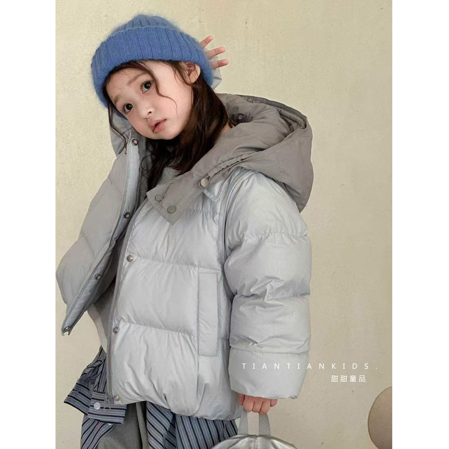 📚 【中童110-160】男童连帽羽绒袄子冬保暖厚女宝双面穿羽绒服外套