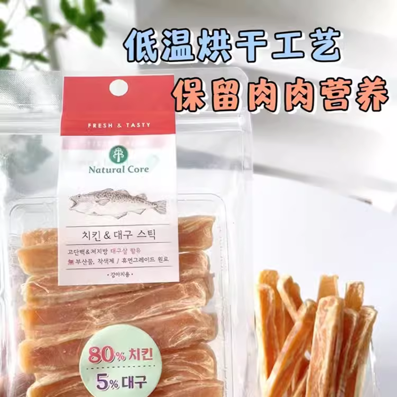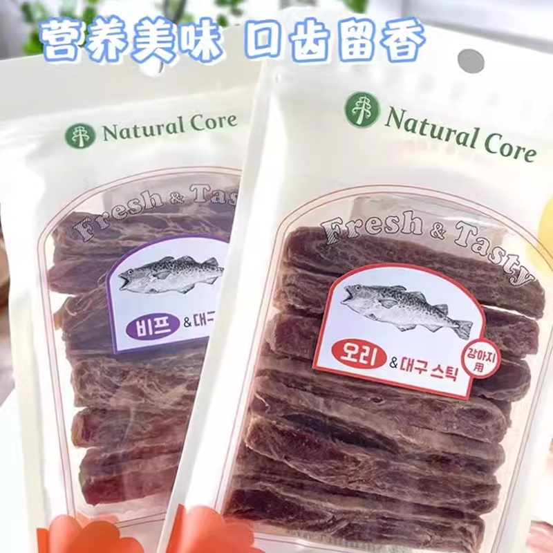 📚 韩国Natural Core狗狗零食鳕鱼条鸡肉牛肉鸭肉条宠物训练奖励肉干