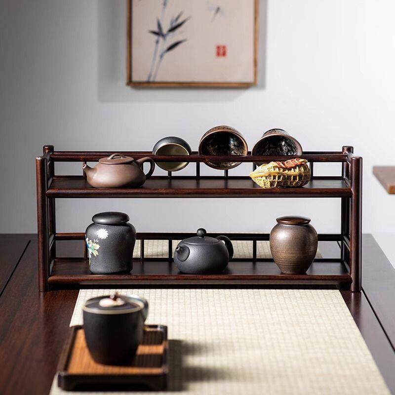 📚 桌面置物架三层茶壶茶杯架紫砂壶茶具收纳架竹制茶棚置物架博古架