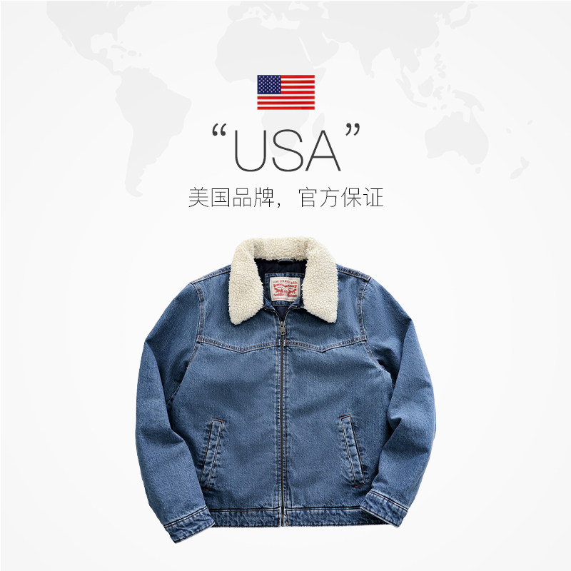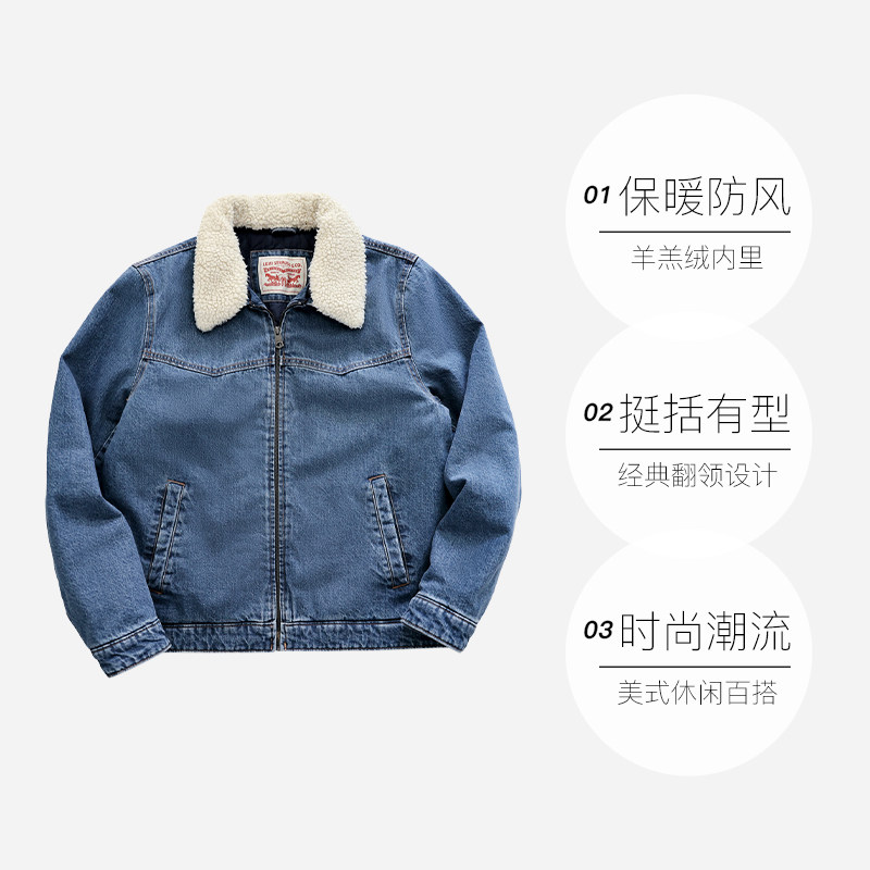 📚 【自营】Levi’s/李维斯男士牛仔羊羔绒夹克翻领冬季保暖棉服外套