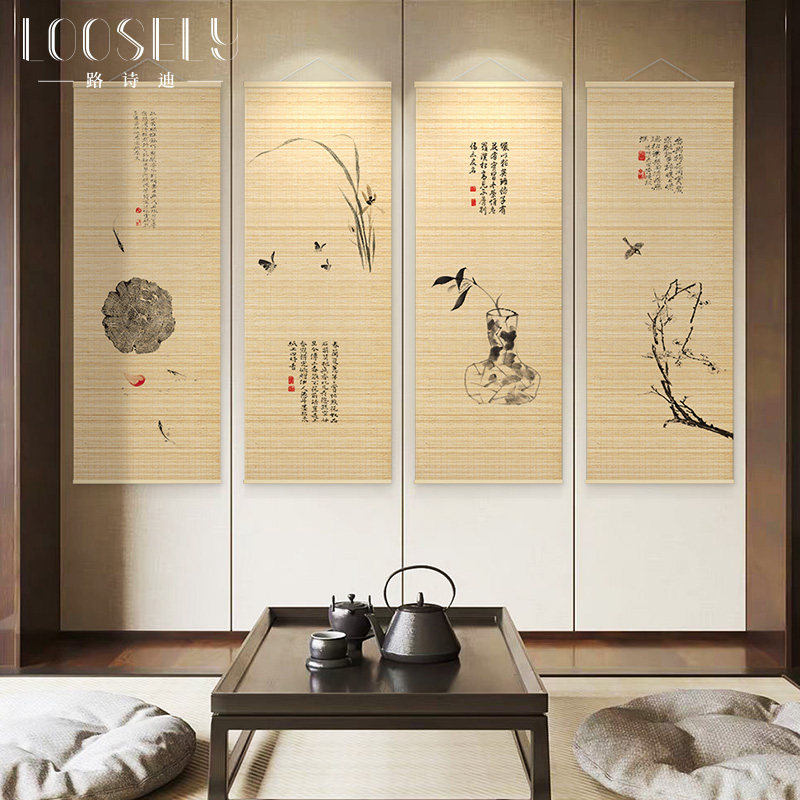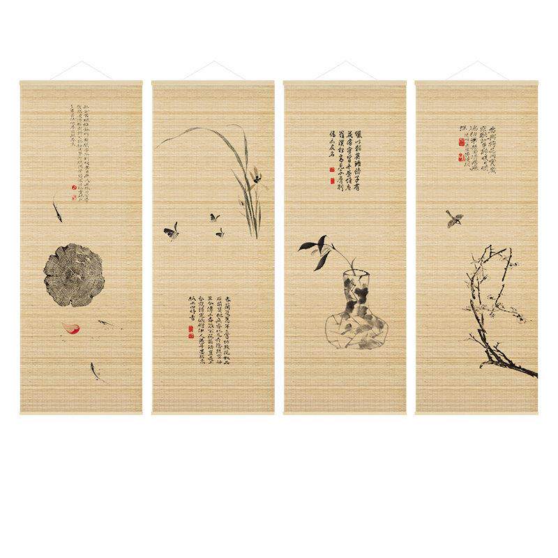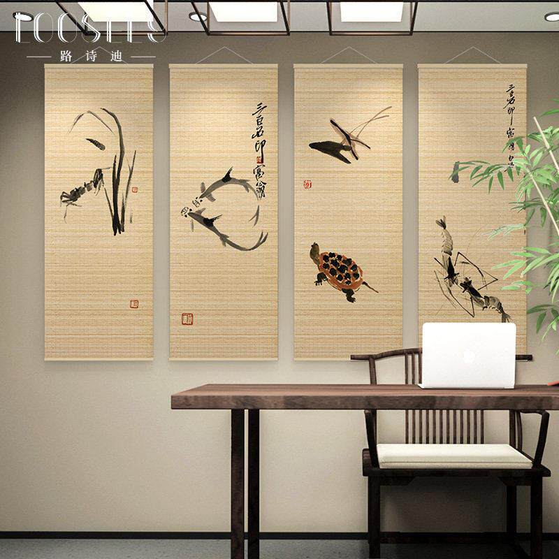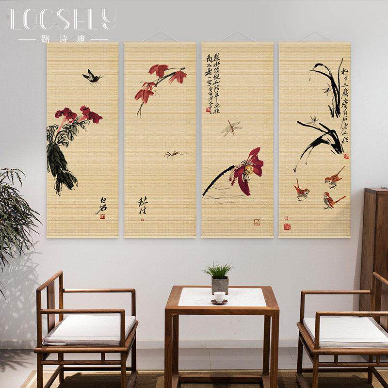 📚 新中式装饰画客厅沙发背景墙竹帘画茶室书房挂画齐白石禅意四联画