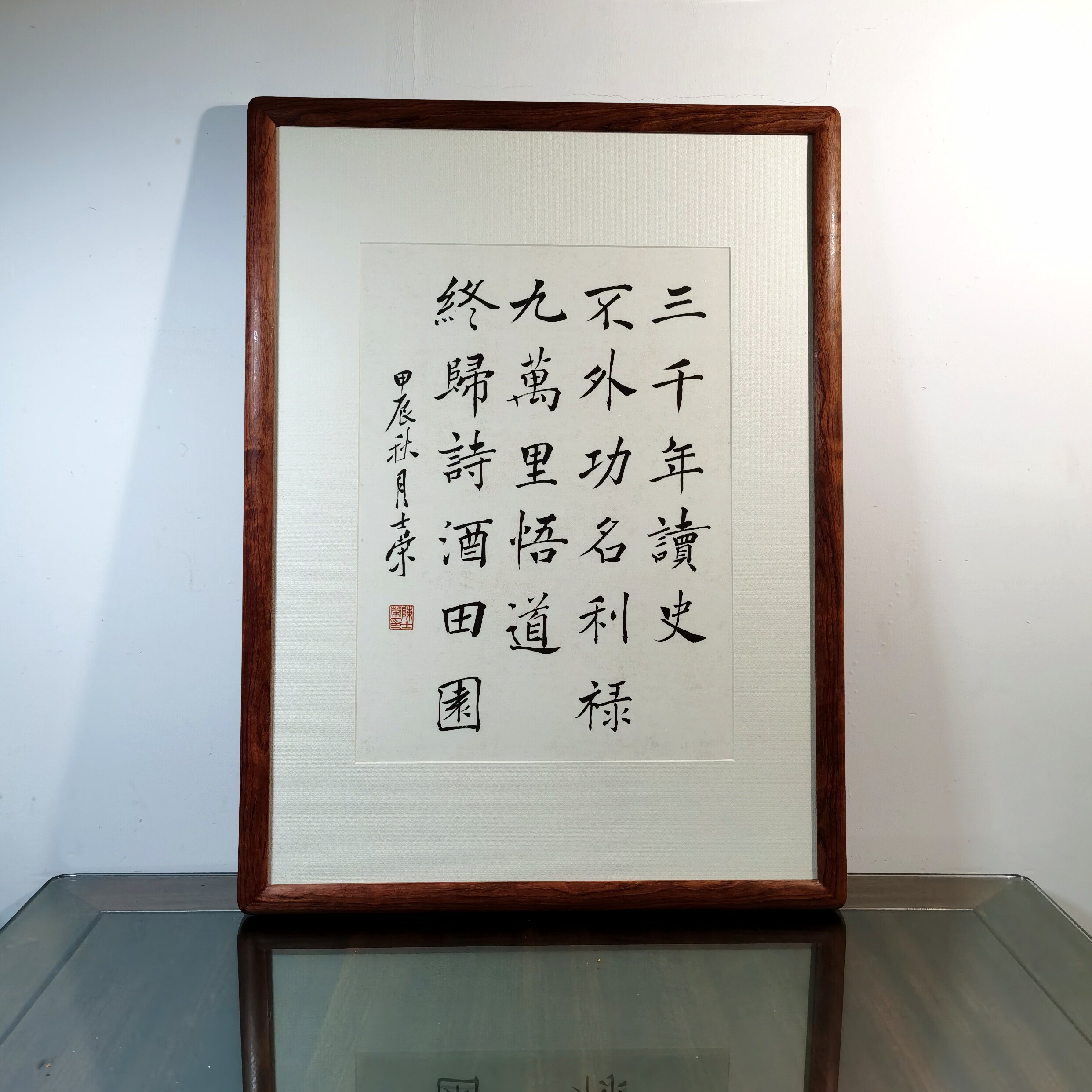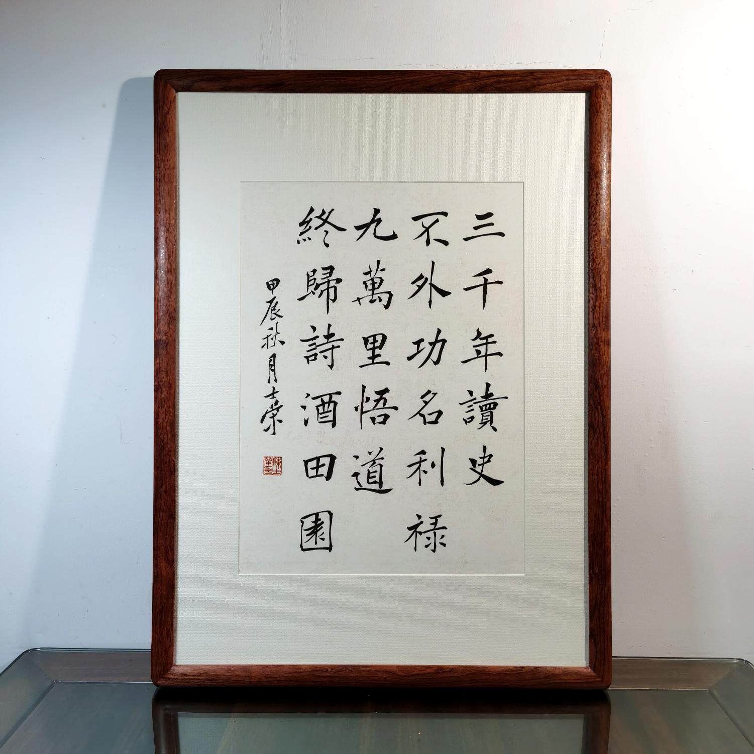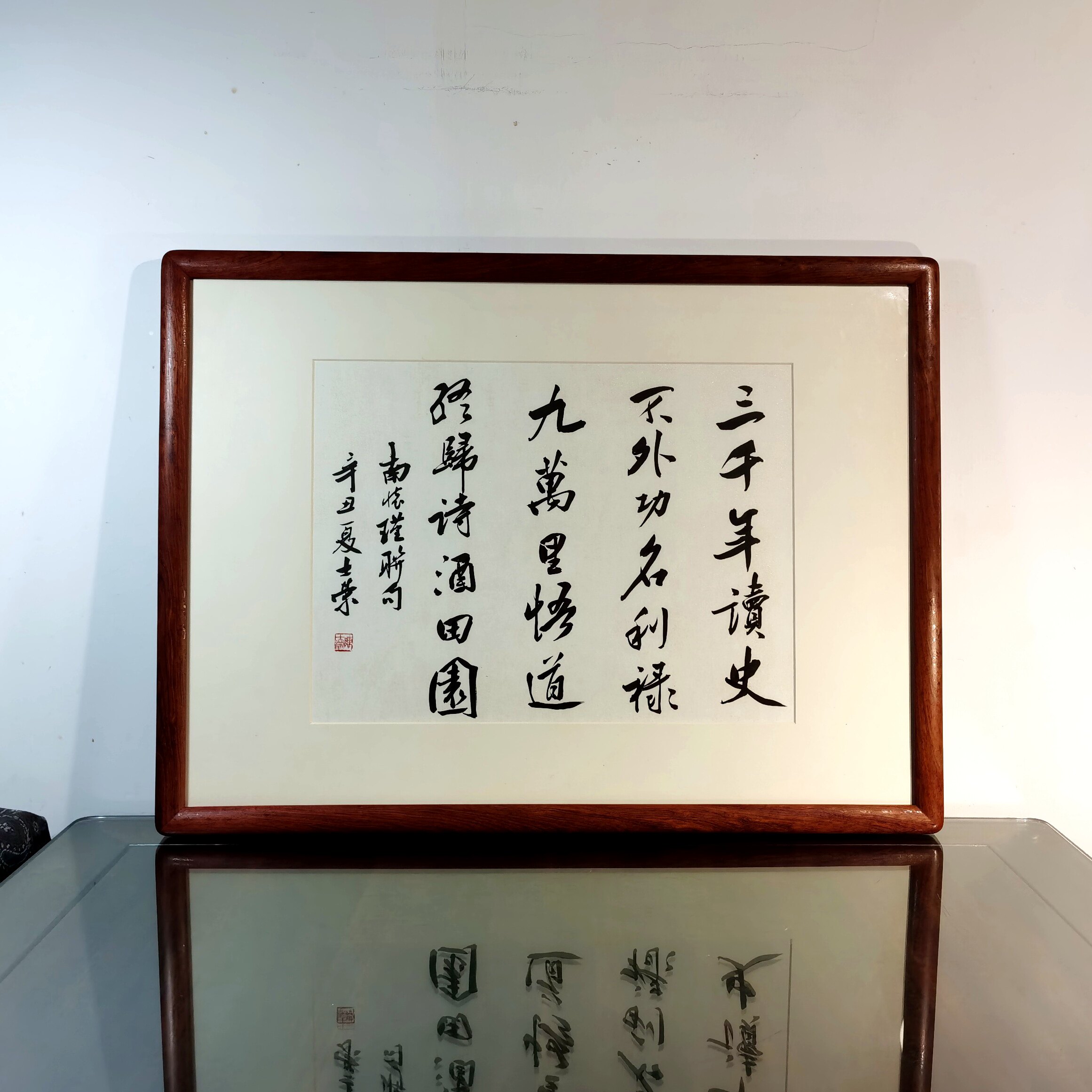 📚 三千年读史不外功名利禄九万里悟道终归诗酒书法真迹花梨木框作品