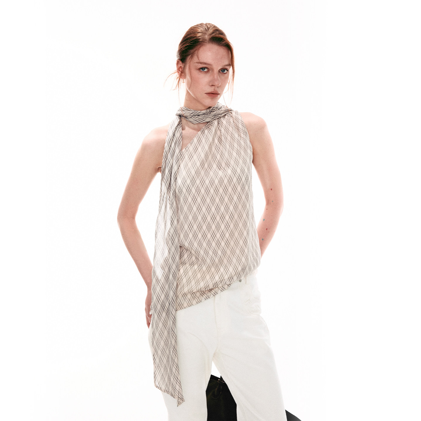 📚 SINGLE MOMENT 26SS法式通勤复古优雅飘带挂脖上衣无袖T恤背心女