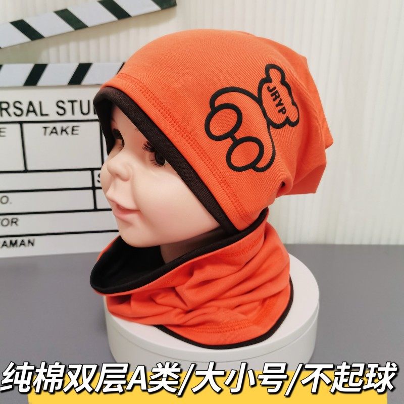 📚 儿童薄款套头帽春秋冬帽子男中大童套头纯棉韩版女孩堆堆帽围脖