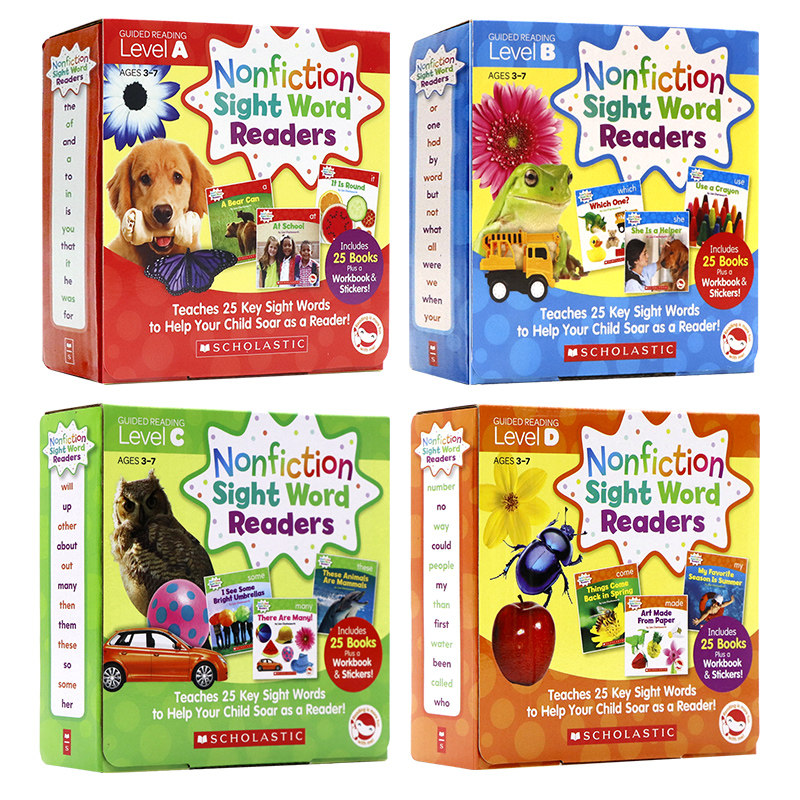 📚 Scholastic点读版学乐小分级高频词ABCD四套英文原版 Nonfiction Sight Word Readers ABCD 25册全套礼盒装英语自然拼读初级阶段
