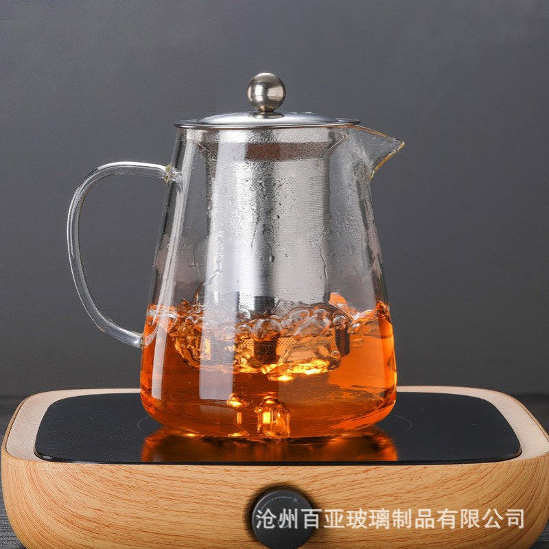 📚 厂家批发高硼硅玻玻璃茶壶茶具三角不锈钢过滤泡茶壶 加厚钢漏壶