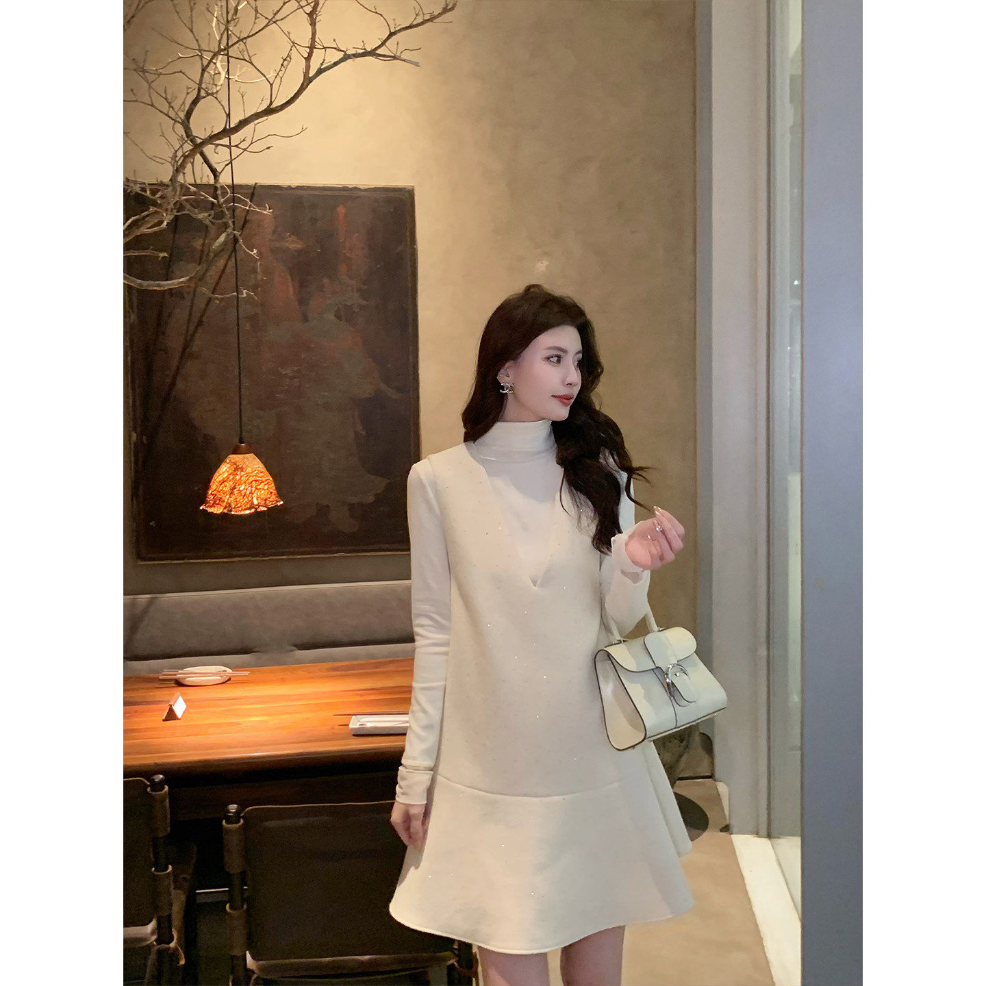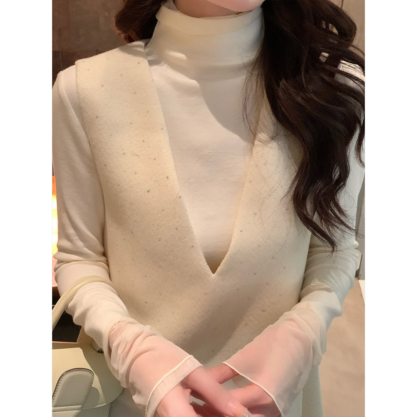 📚 坤总KUN【柔软时光】米色加厚针织打底衫女冬季显瘦内搭上衣新款