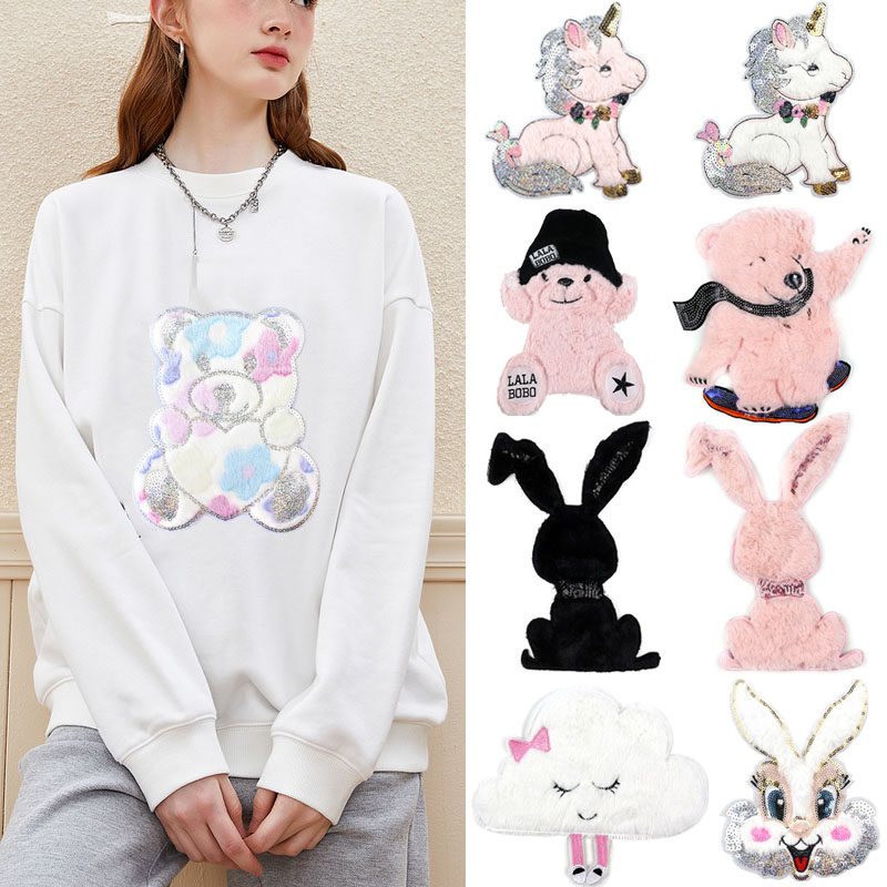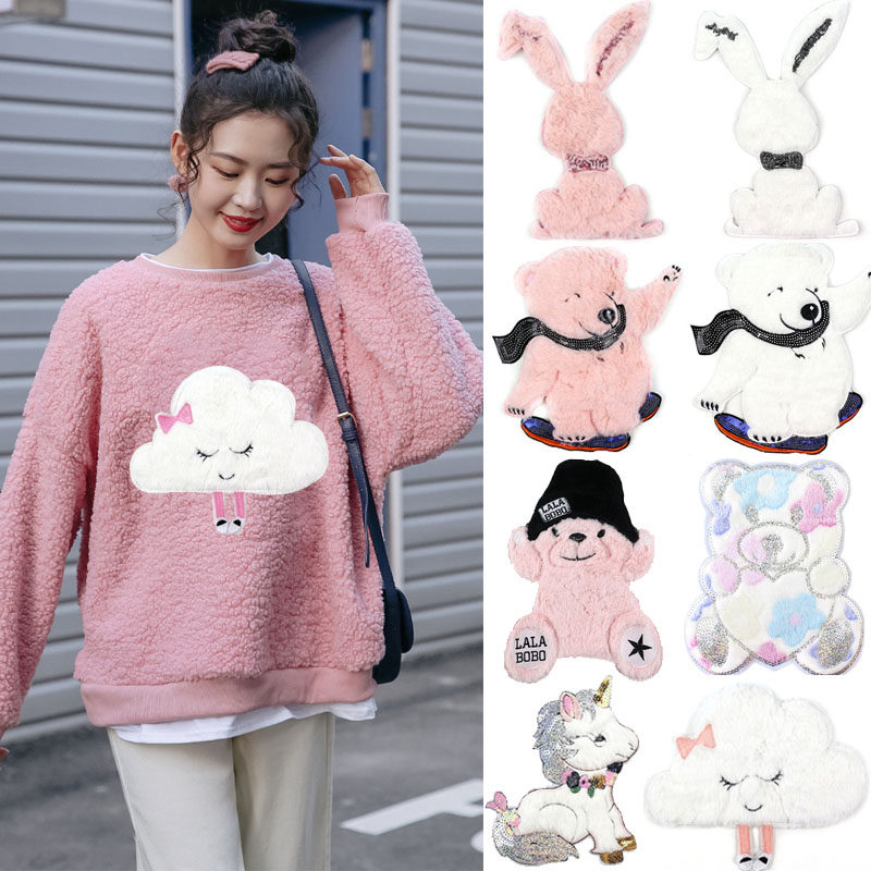 📚 大号毛绒贴布绣棉服外套破洞diy修补卫衣装饰图案补衣服补丁兔子