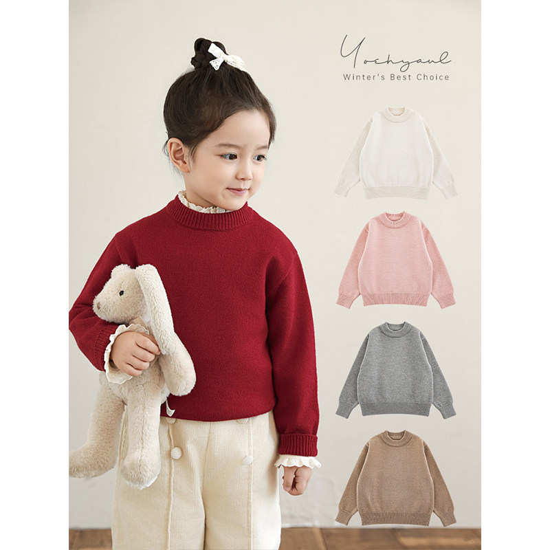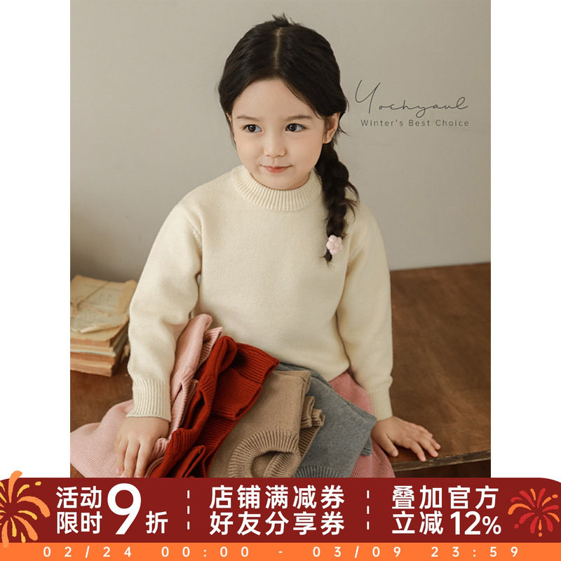 📚 幼悠女童纯色小高领毛衣冬季俏皮可爱罗纹织边防风保暖休闲上衣潮