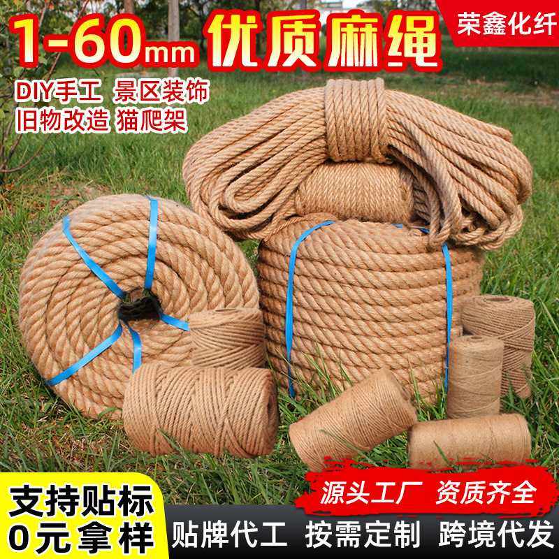 📚 黄麻绳吊牌灯绳捆绑装饰绳优质猫爬架用绳拔河绳爆款粗细麻绳