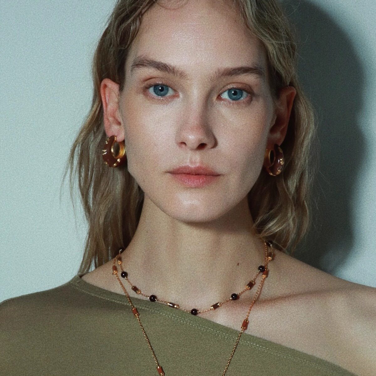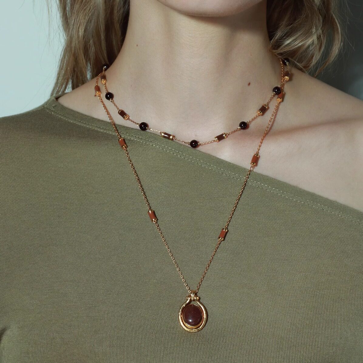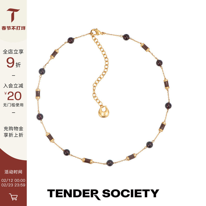 📚 Tender Society Luck系列八字纹珐琅石榴石串珠项链法式小众时髦