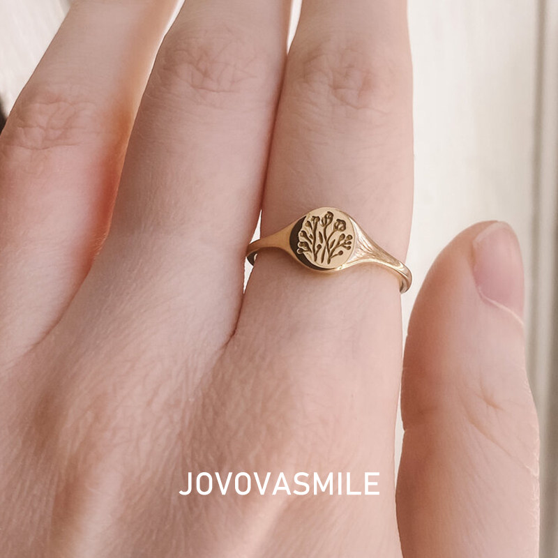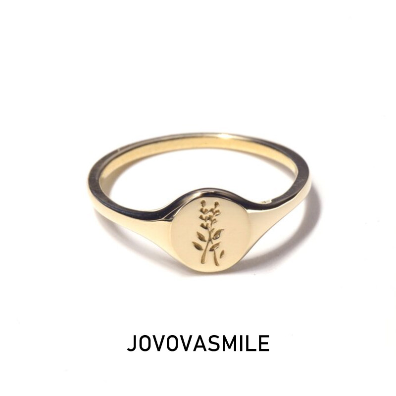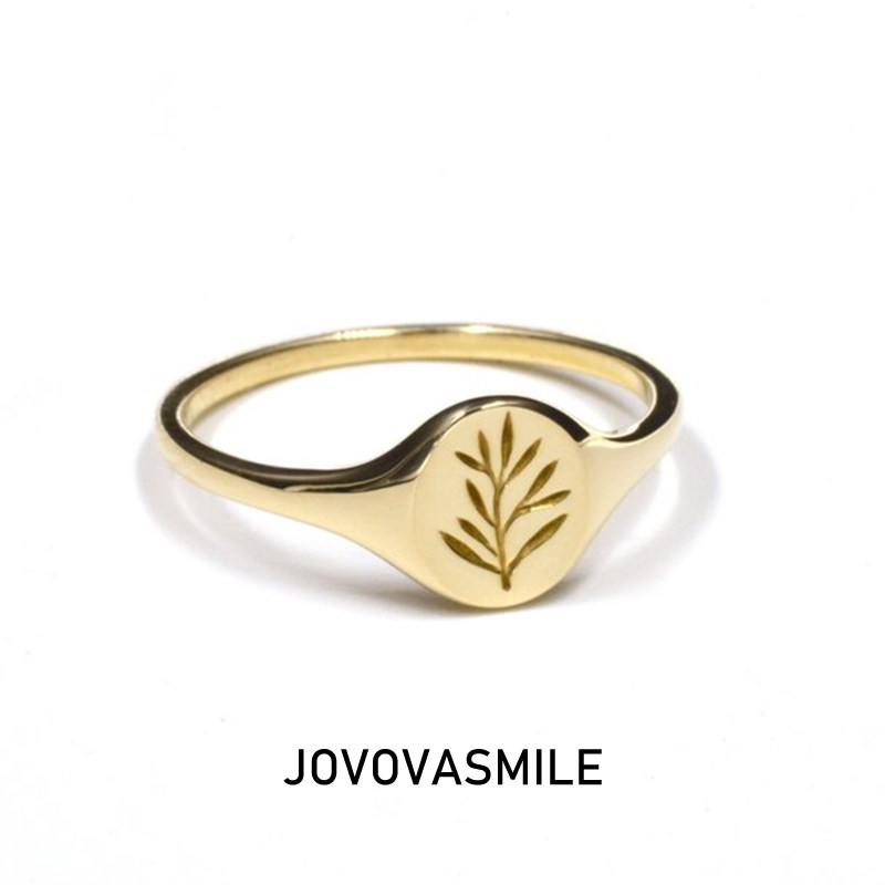 📚 印章戒指18k黄金实心橄榄树枝花丛树叶定制图案免费刻字闺蜜戒指