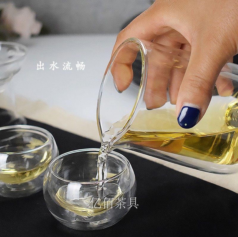 📚 双层玻璃手抓壶创意水杯泡茶公道杯分茶器便携快客杯功夫茶具防烫