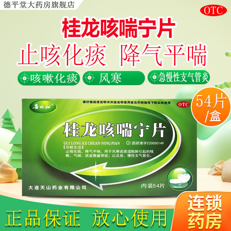 📚 普林松 桂龙咳喘宁片54片 气喘 风寒止咳化痰 降气平喘OTC/G