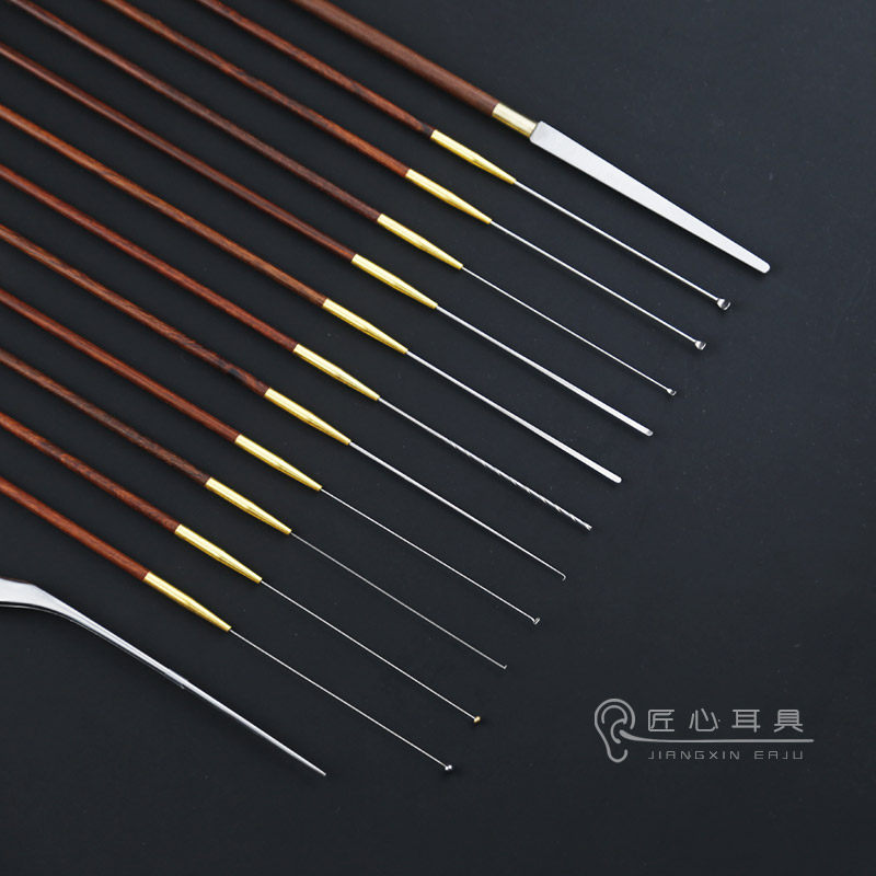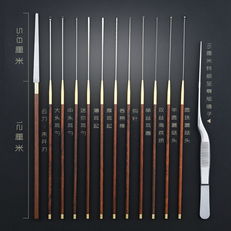 📚 专业采耳工具木柄挖耳勺耳起耳扒蘑菇头云刀卷棉棒海底捞高级套装