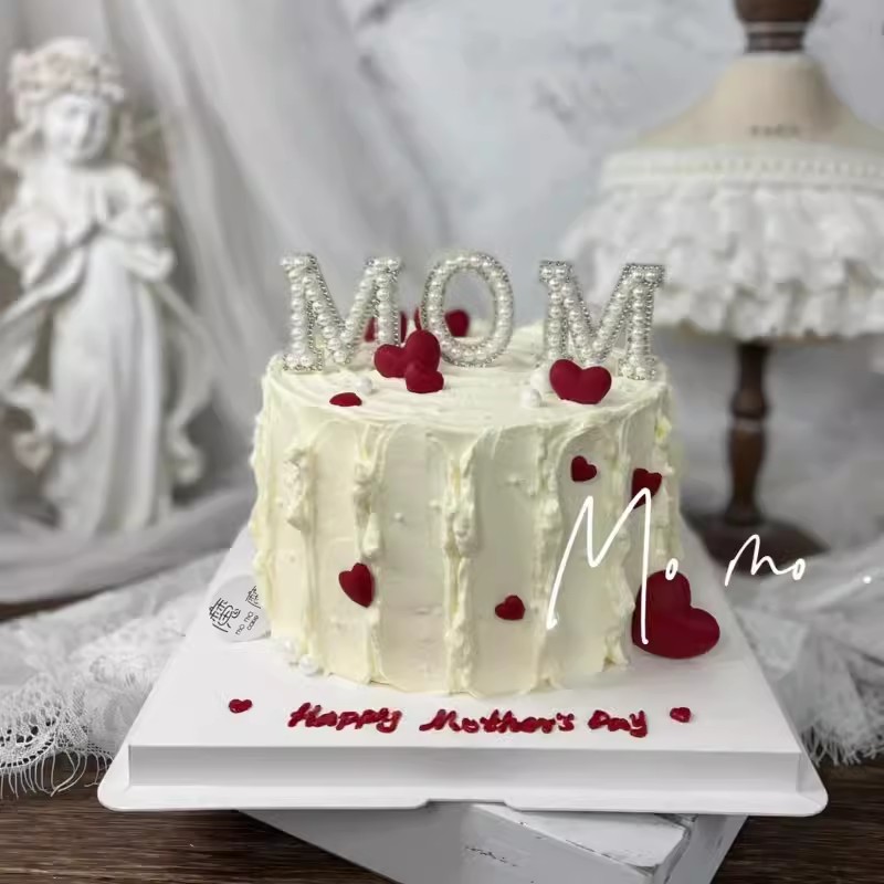 📚 2024母亲节简约蛋糕装饰品仙女妈妈爱心珍珠MOM插件烘焙装饰摆件