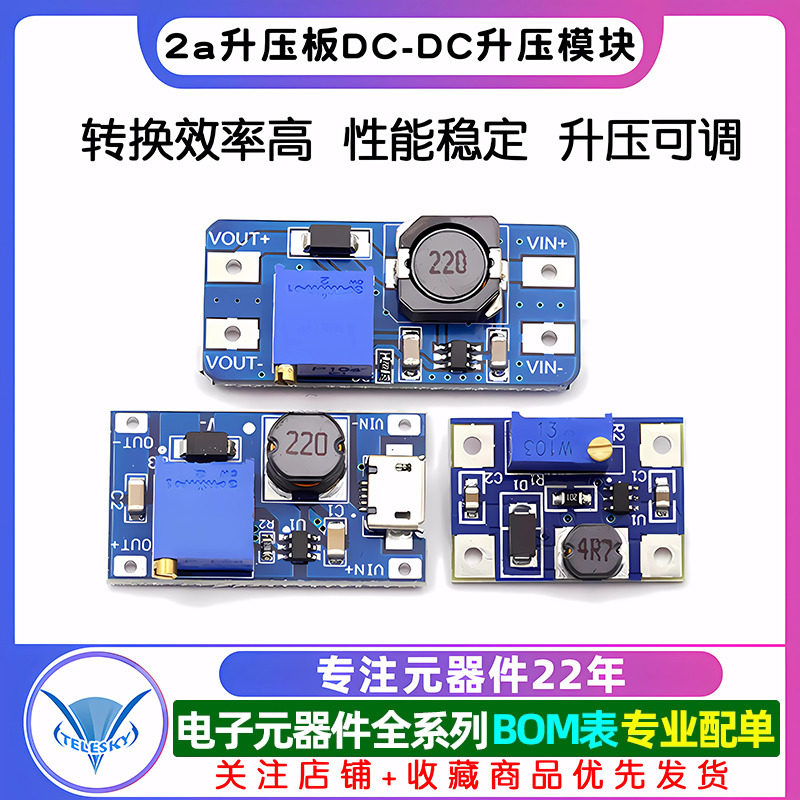 📚 2a升压板DC-DC可调升压稳压电源模块mt3608输入2-24V升5/9/12/28V