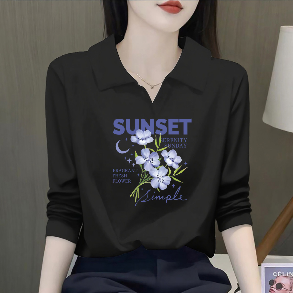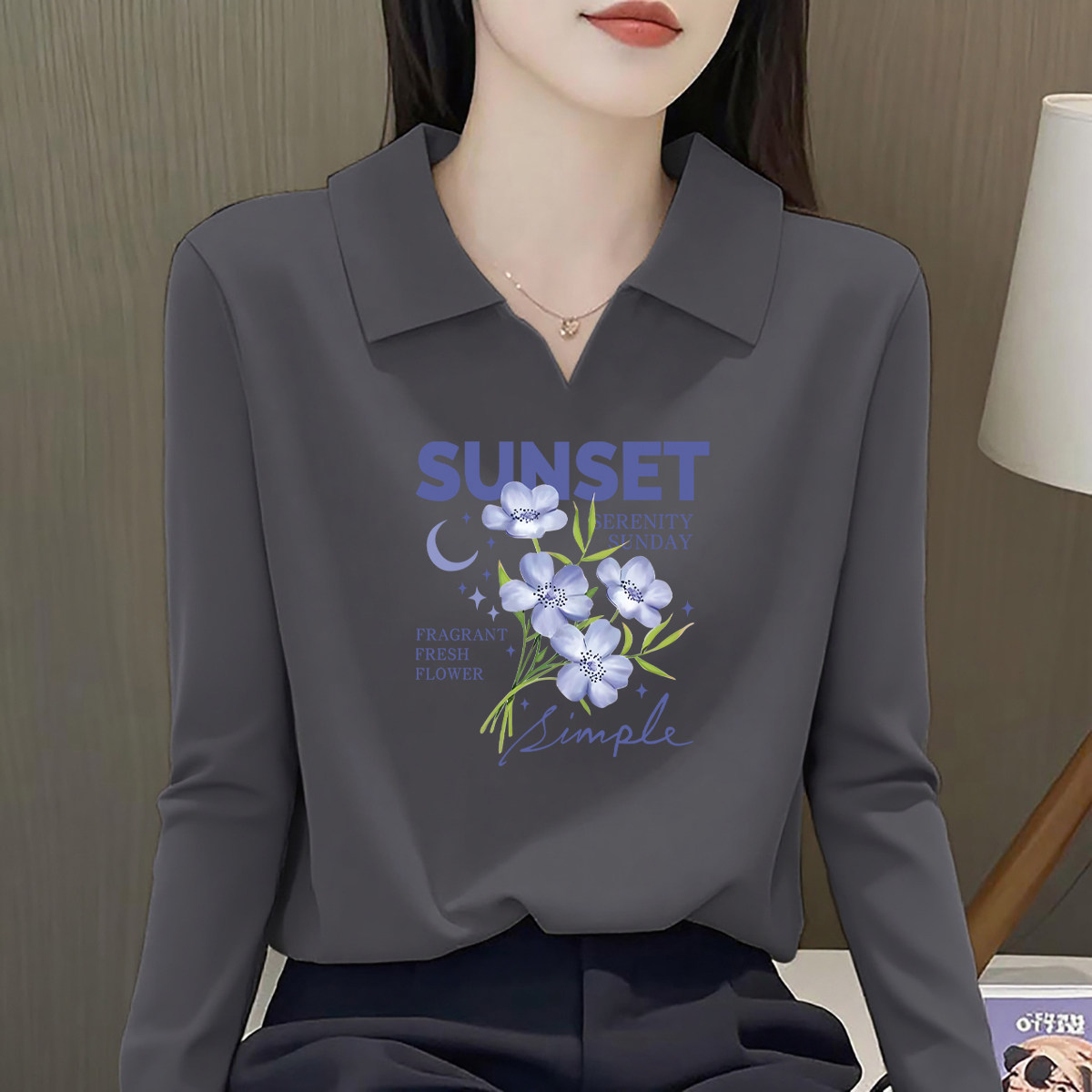 #纯棉翻领长袖T恤 #秋冬新款 #大码宽松显瘦 #内搭单品 #小红书种草