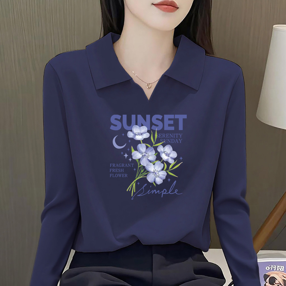 打底翻领长袖纯棉宽松