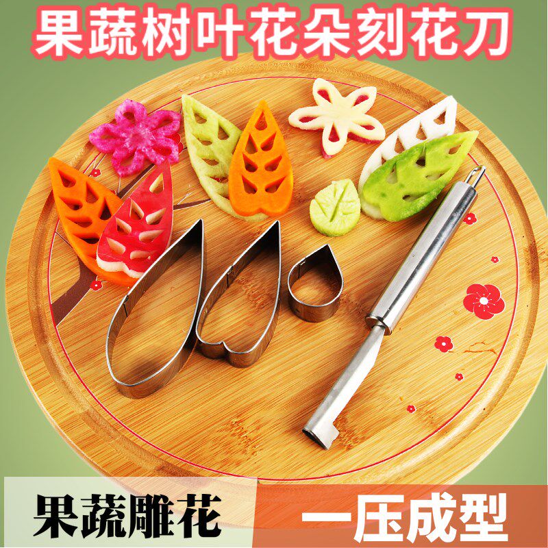 📚 厨房盘式雕刻刀工具叶子花朵印花刀模具摆盘蔬菜水果柳叶刀三件套