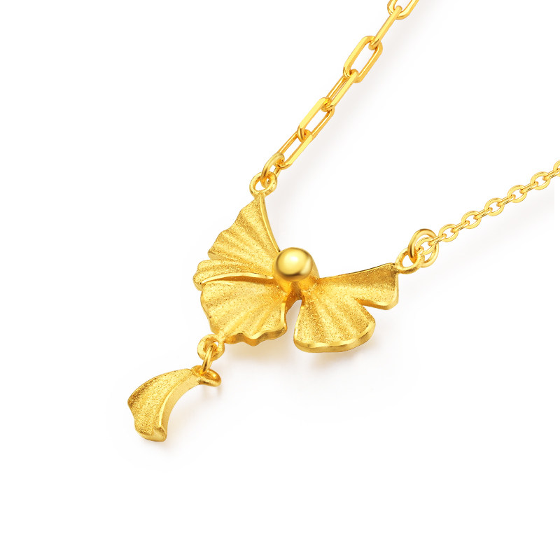 📚 老庙黄金足金999银杏叶凤尾花形项链花瓣婚嫁三金结婚节日礼物女