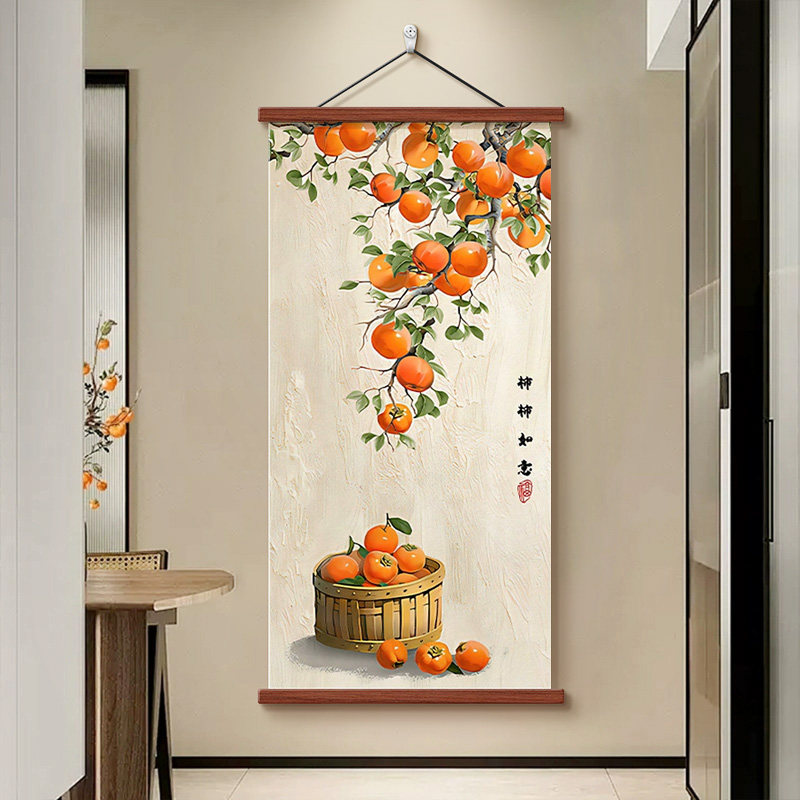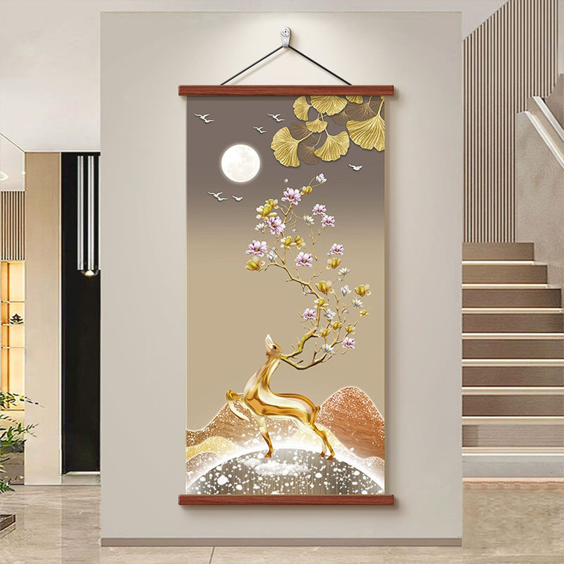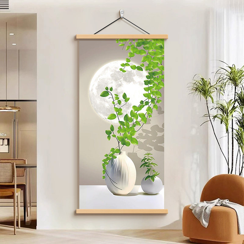 📚 新中式荷气生财玄关装饰画高级感走廊过道挂画客厅背景墙竖版壁画