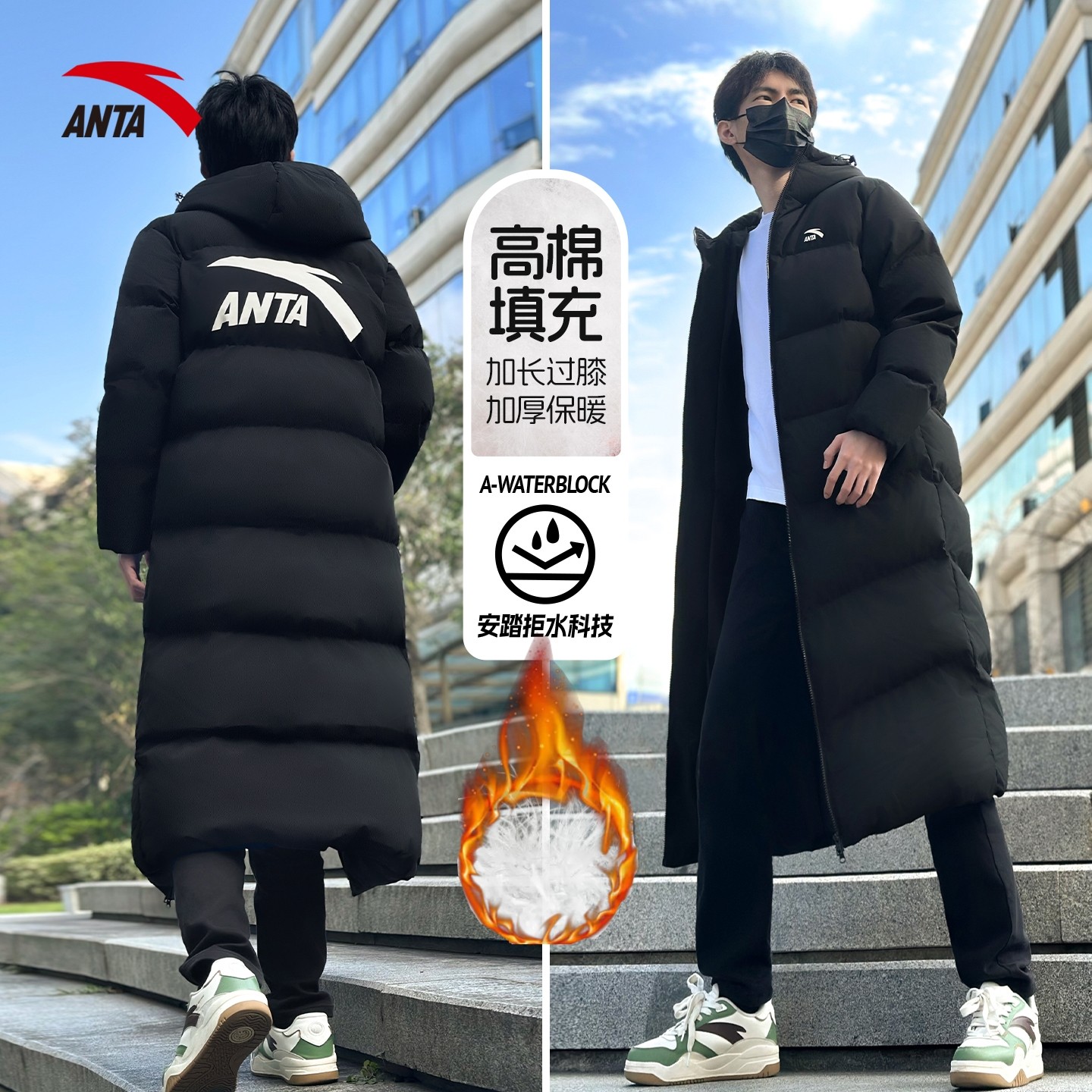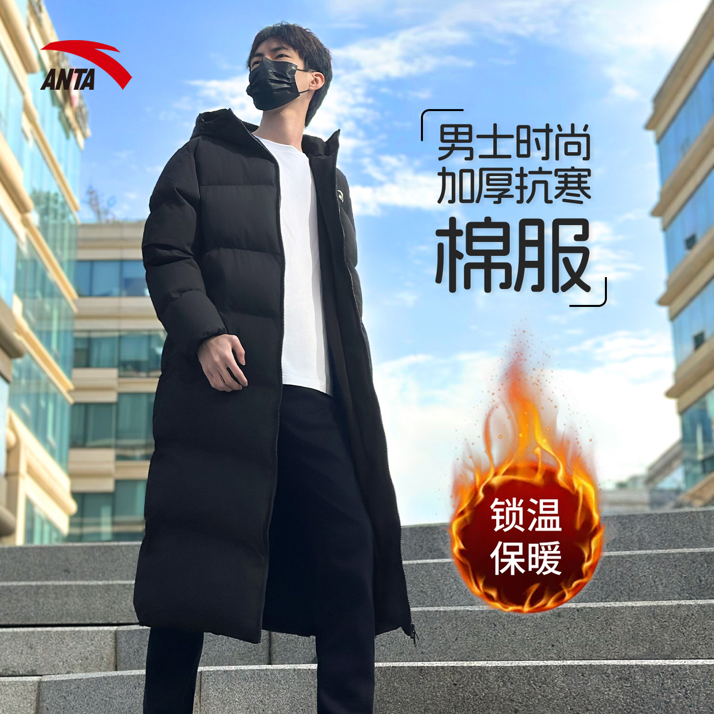 📚 安踏长款棉服男百搭运动上衣宽松时尚冬季新款休闲加厚保暖外套