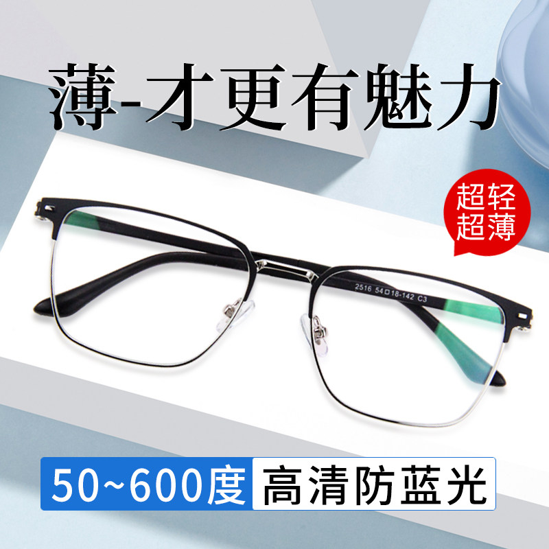📚 超薄高度老花镜高清防蓝光600 550 500 450 275 225 75 50度眼镜