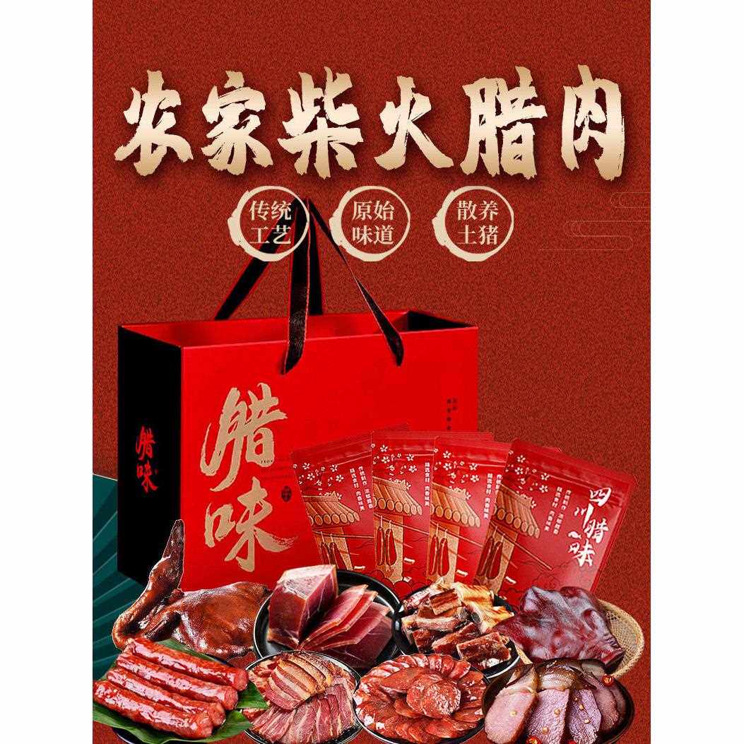 📚 腊味年货礼盒装四川特产烟熏腊肉腊肠香肠腊味礼盒春节送礼走亲戚