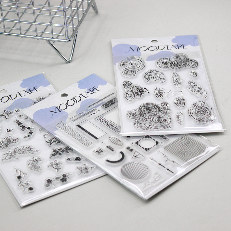 📚 moodtape水纹涟漪方框几何花素材手账橡胶皮章透明mood手帐印章