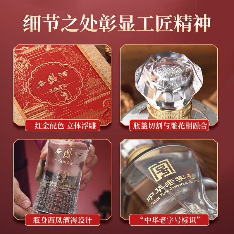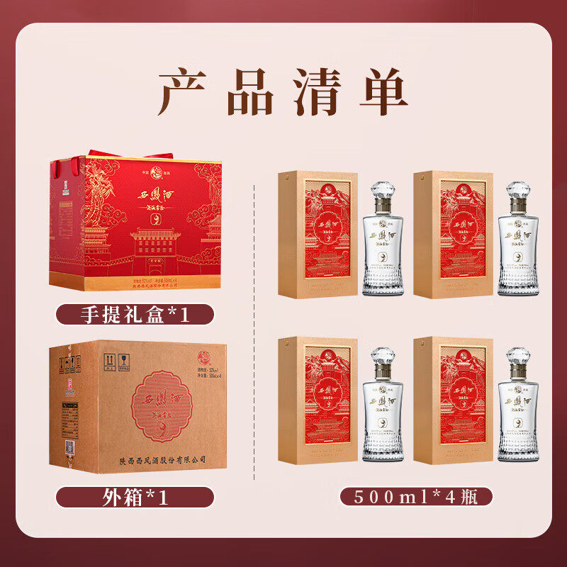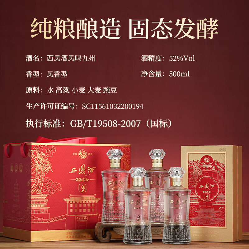 📚 西凤酒正品凤鸣九州52度凤香白酒500ml*4瓶箱装礼盒自饮送礼宴请