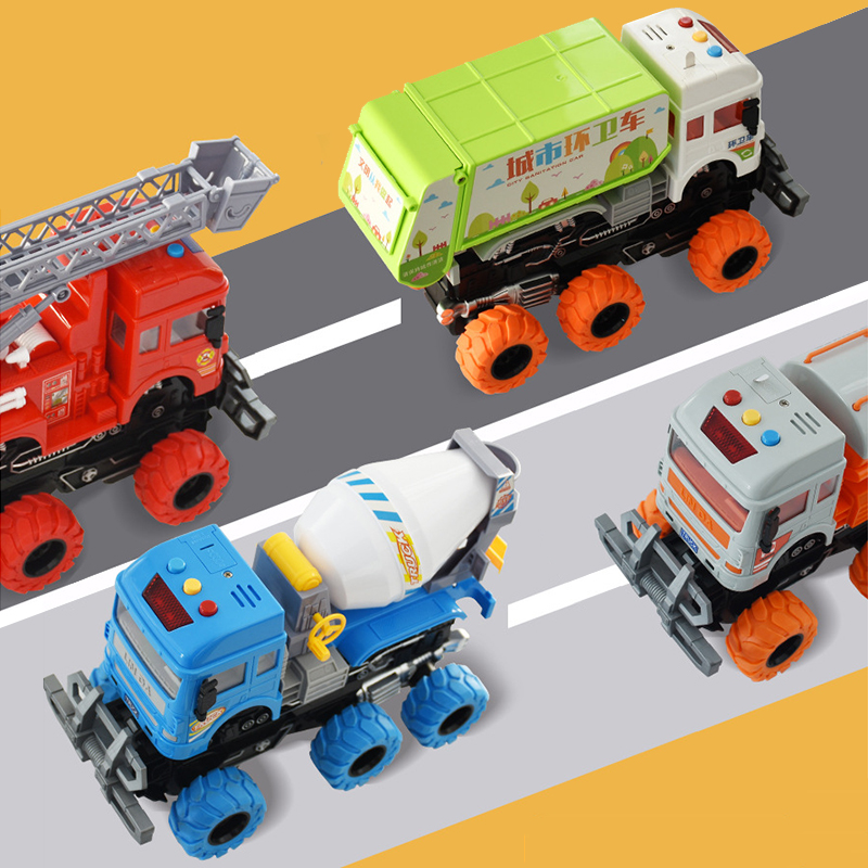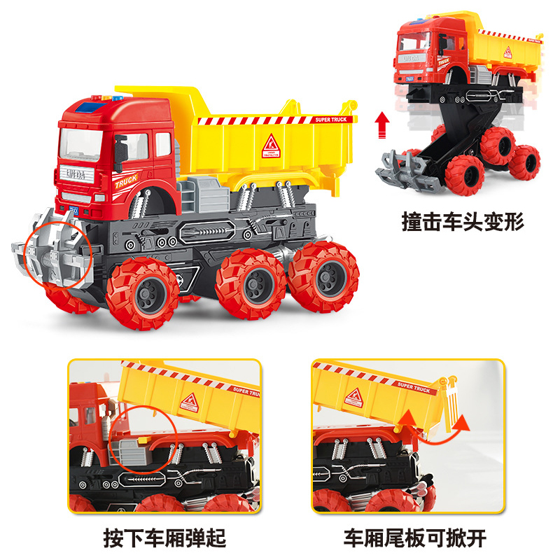 📚 林达变形工程车土挖掘机消防云梯惯性车讲故事音乐玩具车男孩车模