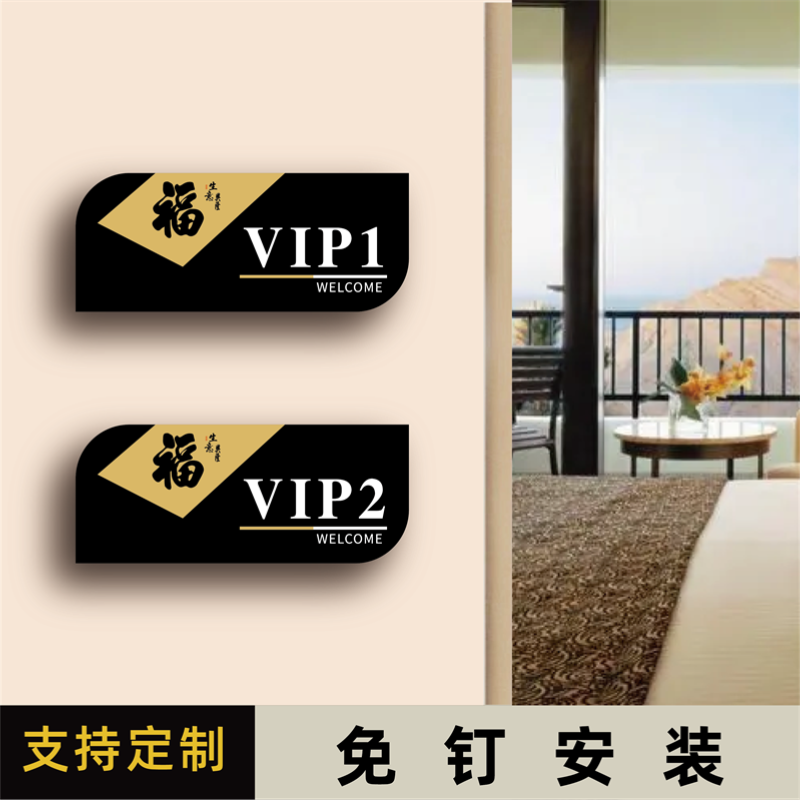 📚 亚克力创意个性标志牌VIP贵宾室雅间门牌酒店饭店棋牌室包厢标识牌定制美容院足浴店茶楼KTV包间房间号门牌贴