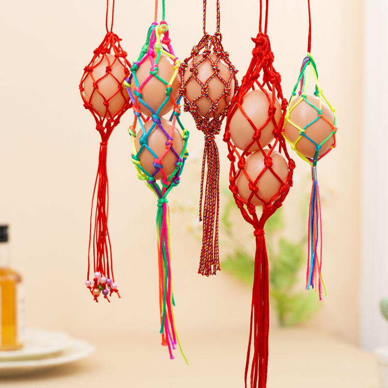 📚 立夏幼儿园儿童蛋兜端午节五彩鸡蛋鸭蛋挂脖蛋网蛋袋手工编织成品