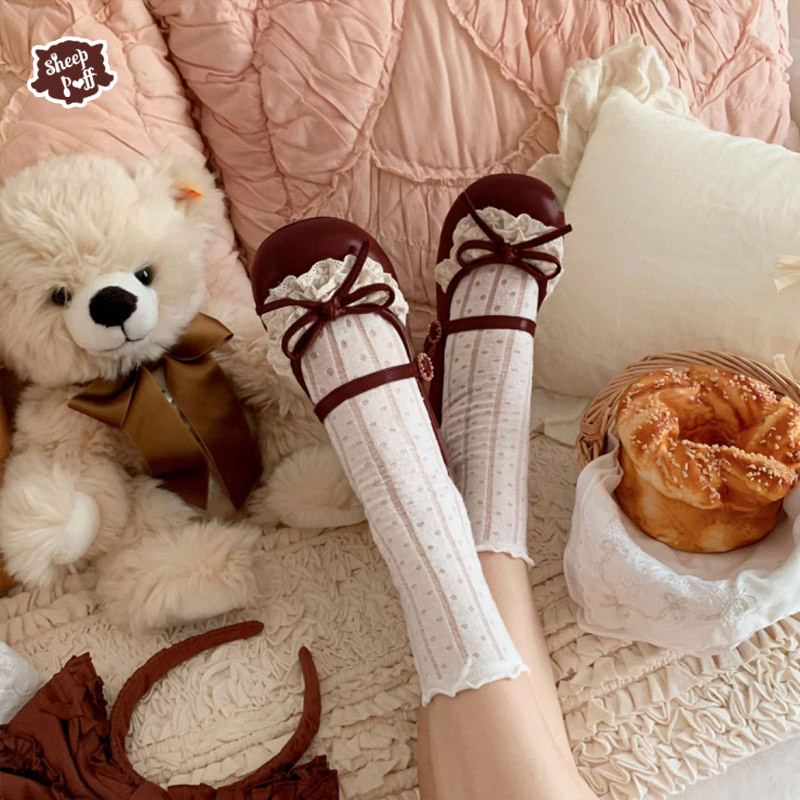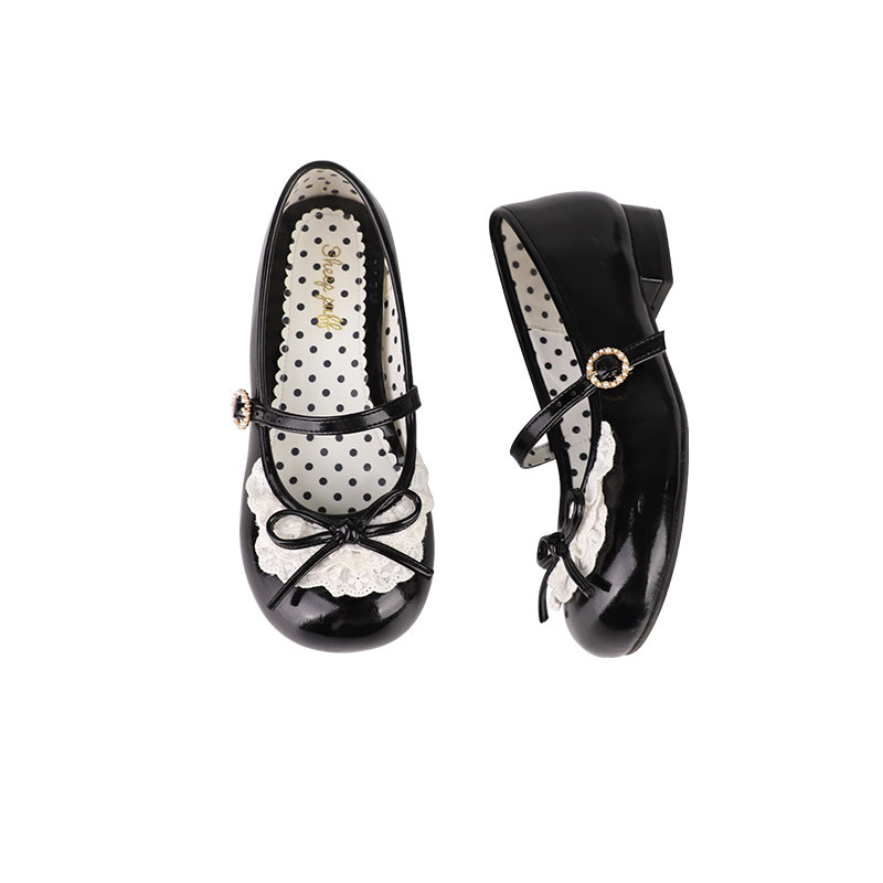📚 【现货】小蕾拉中低跟 绵羊泡芙Lolita蝴蝶结复古法系平底鞋