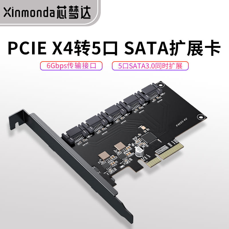 📚 芯梦达PCIEx1x4x8x16转5口SATA3.0串口硬盘服务器8口扩展10口转接