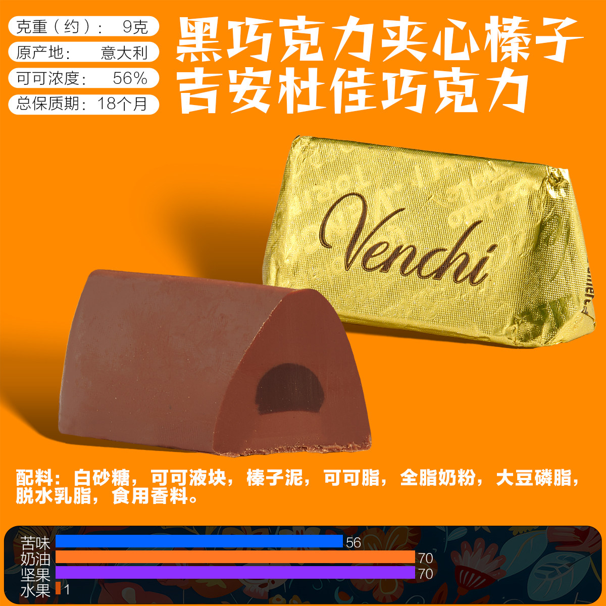 📚 意大利进口VENCHI/闻绮黑巧克力开心果吉安杜佳散装零食喜糖coco