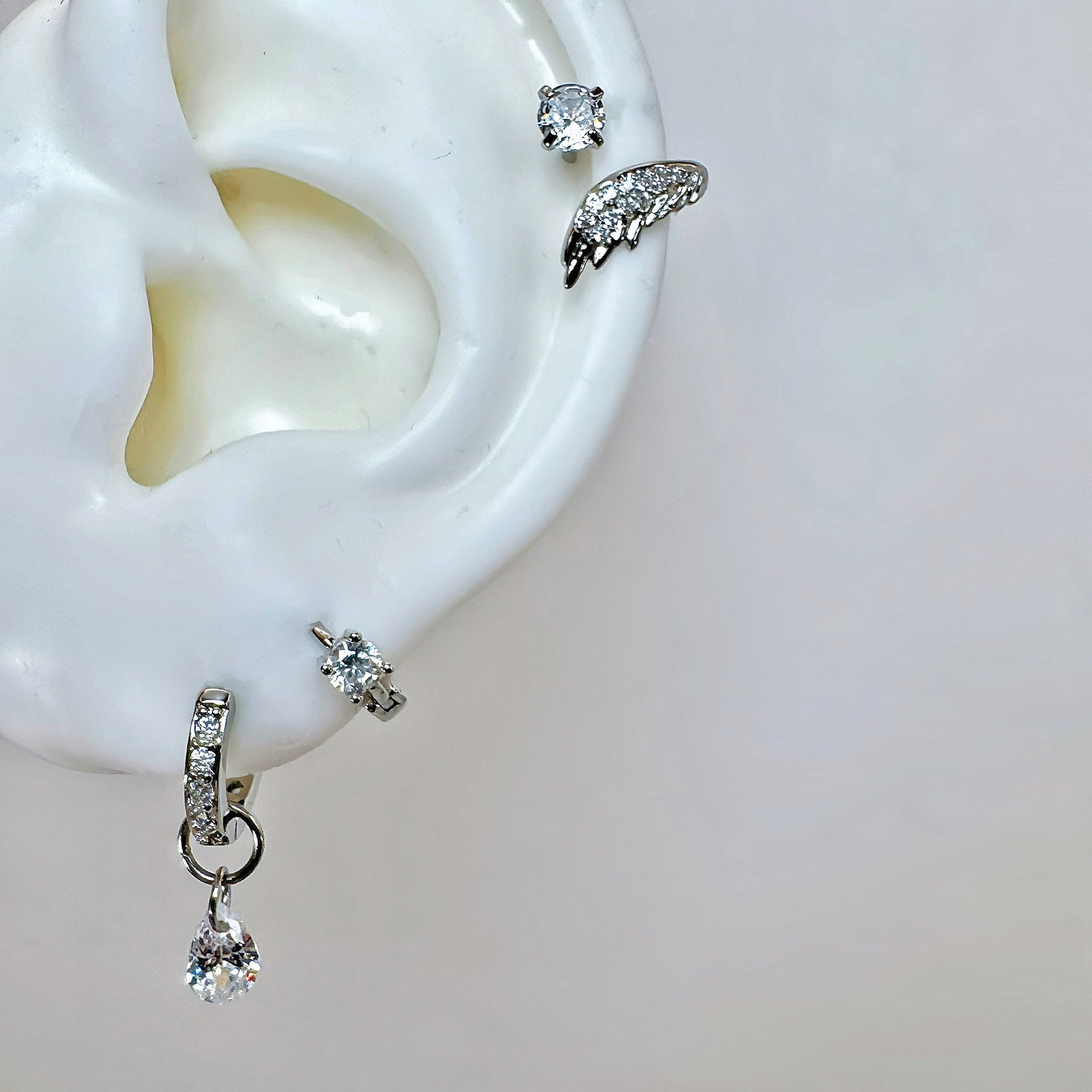 📚 二十二丁目 翅膀耳钉女高级感锆石耳骨钉耳蜗钉气质耳圈耳环耳扣