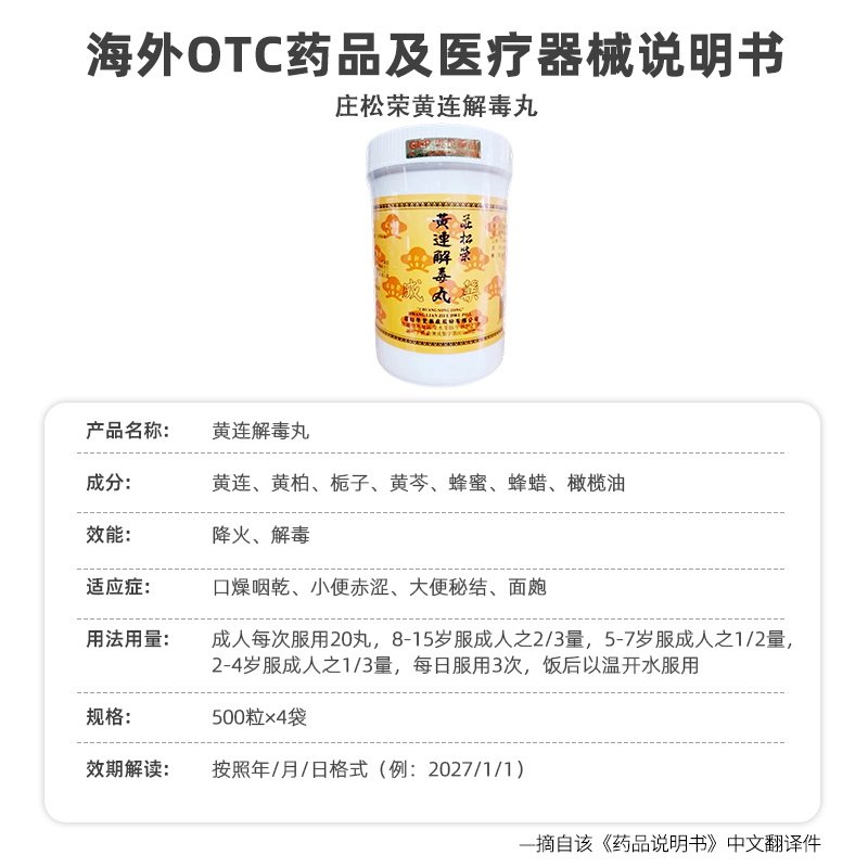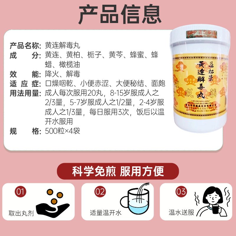 📚 庄松荣黄连解毒丸1000粒清热泻火解毒大热烦躁咽干失眠热症