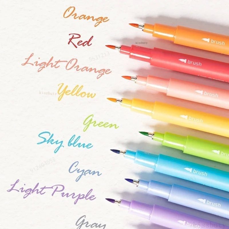 📚 12 Pastel Colors Arts Calligraphy Brush Pen Brush Tip Marker