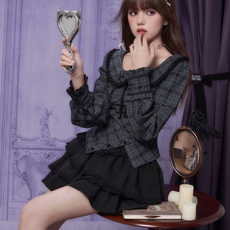 📚 SagiDolls少女斗志 #夜莺#doll感甜酷娃娃领长袖格子上衣衬衫显瘦