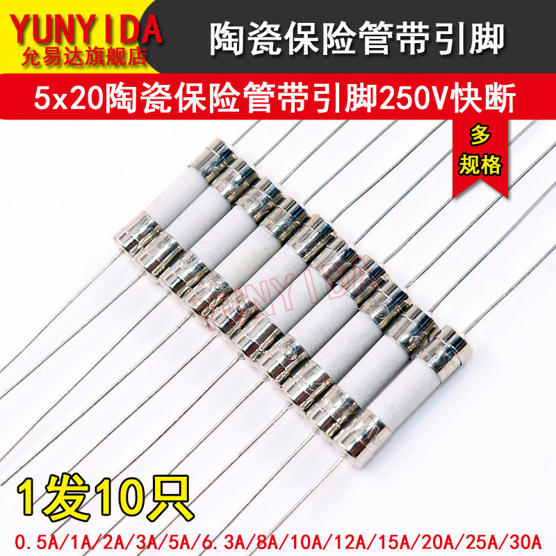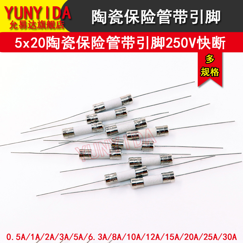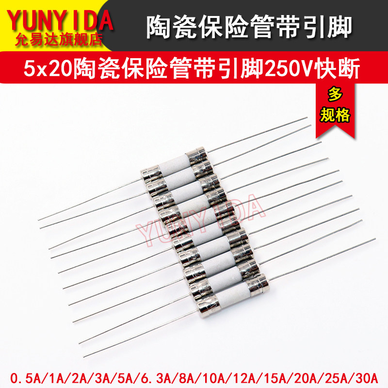 📚 陶瓷保险管带引脚5*20快断F2A/3A/5A/8A/10A/12A/15A/20A/25A/30A